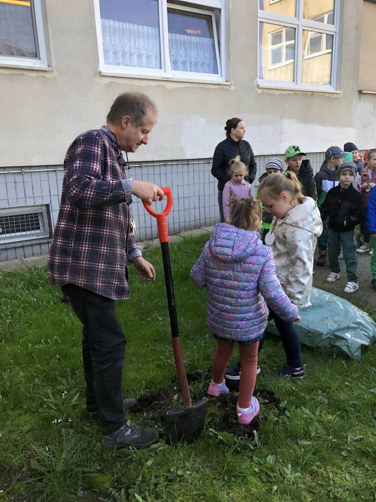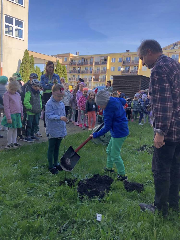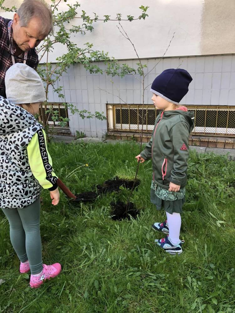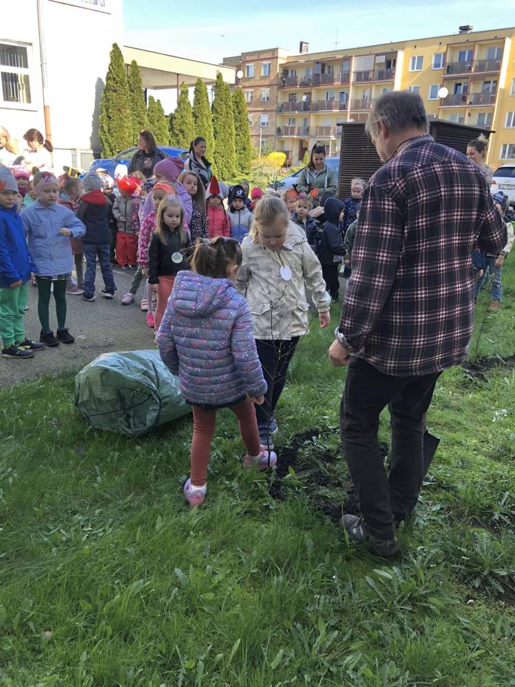 Na zakończenie obchodów Dnia Ziemi 🌍 dzieci zrobiły prezent naszej planecie sądząc drzewka 🌳🌳🌳🌳na terenie naszego przedszkola, które wcześniej podarował nam pan leśniczy Kamil Gawroński.