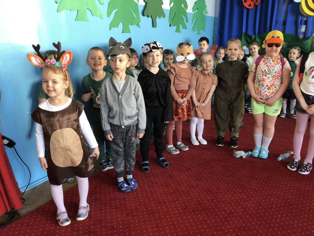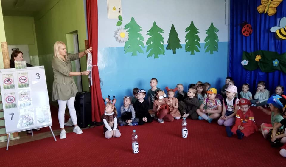 dzieci z grupy 4 i 5 latków. Przedszkolaki ukazały główne zagrożenia dla środowiska i mieszkańców lasu oraz pokazały jak postępować, aby chronić las.