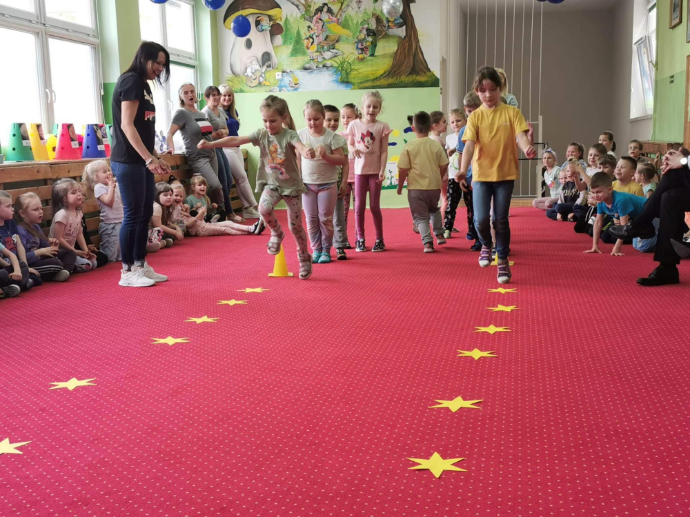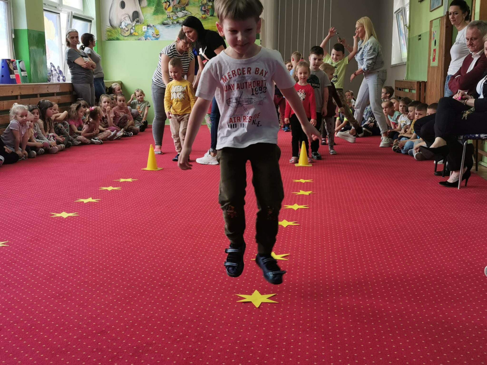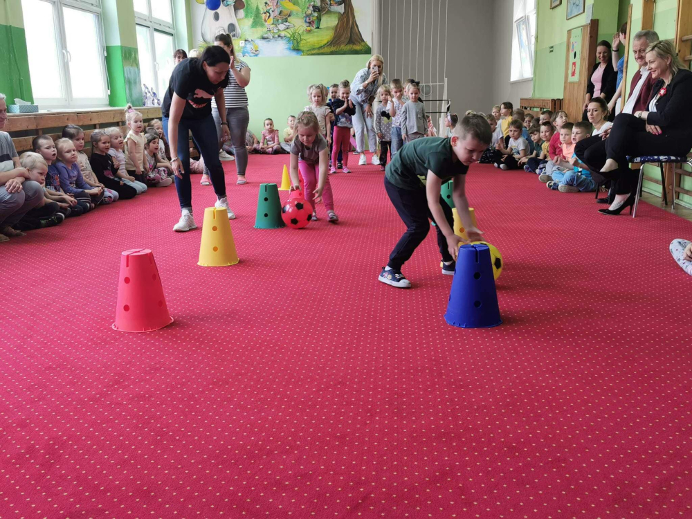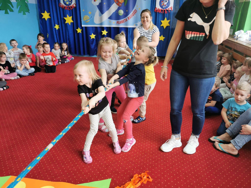 Gwar, śmiech i radość słychać było w całym przedszkolu. Wszyscy doskonale się bawili pokonując trudy różnych konkurencji. Zawodnicy jak również kibice dawali z siebie wszystko. Każda konkurencja nagradzana była dużymi brawami.