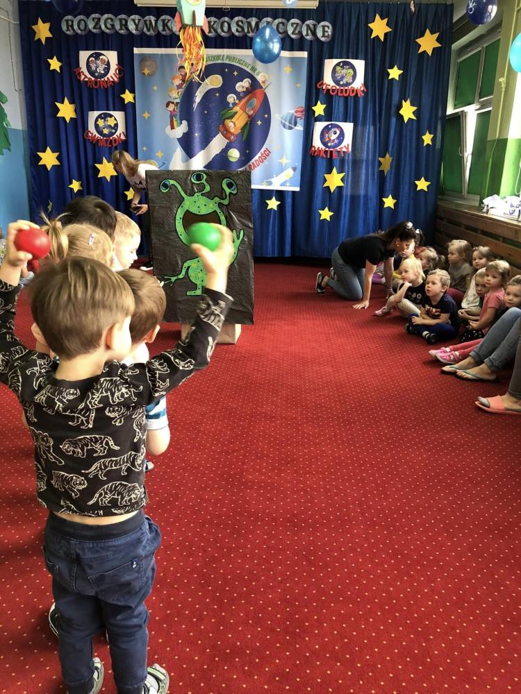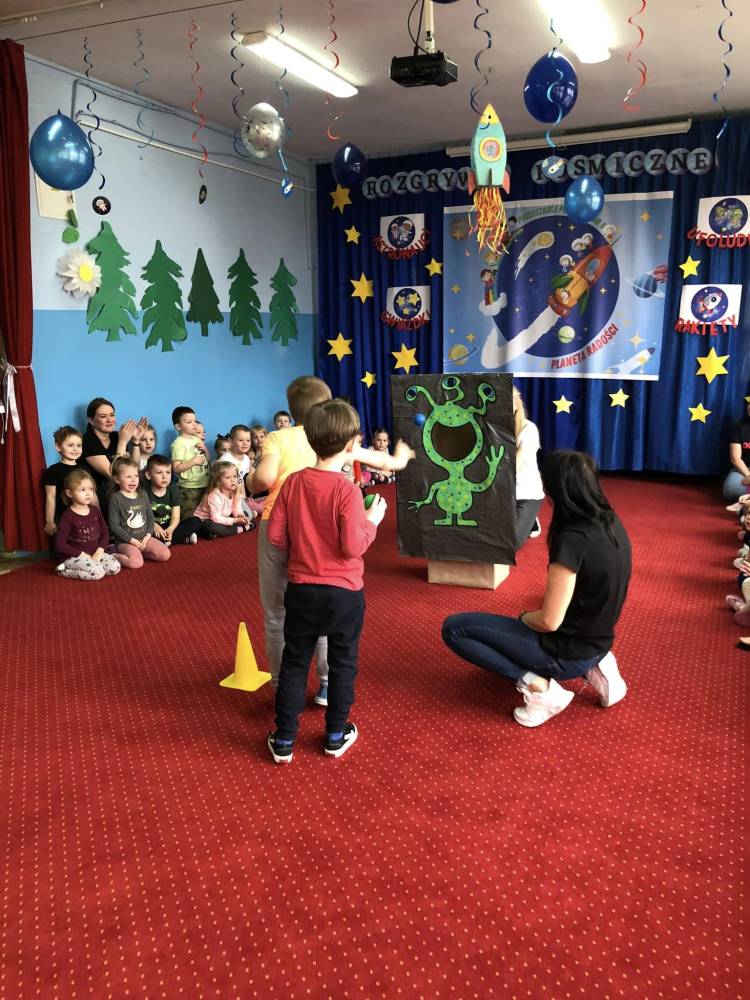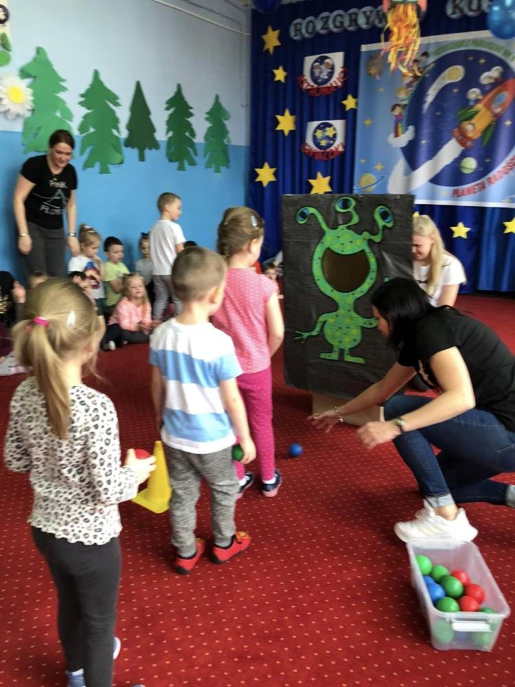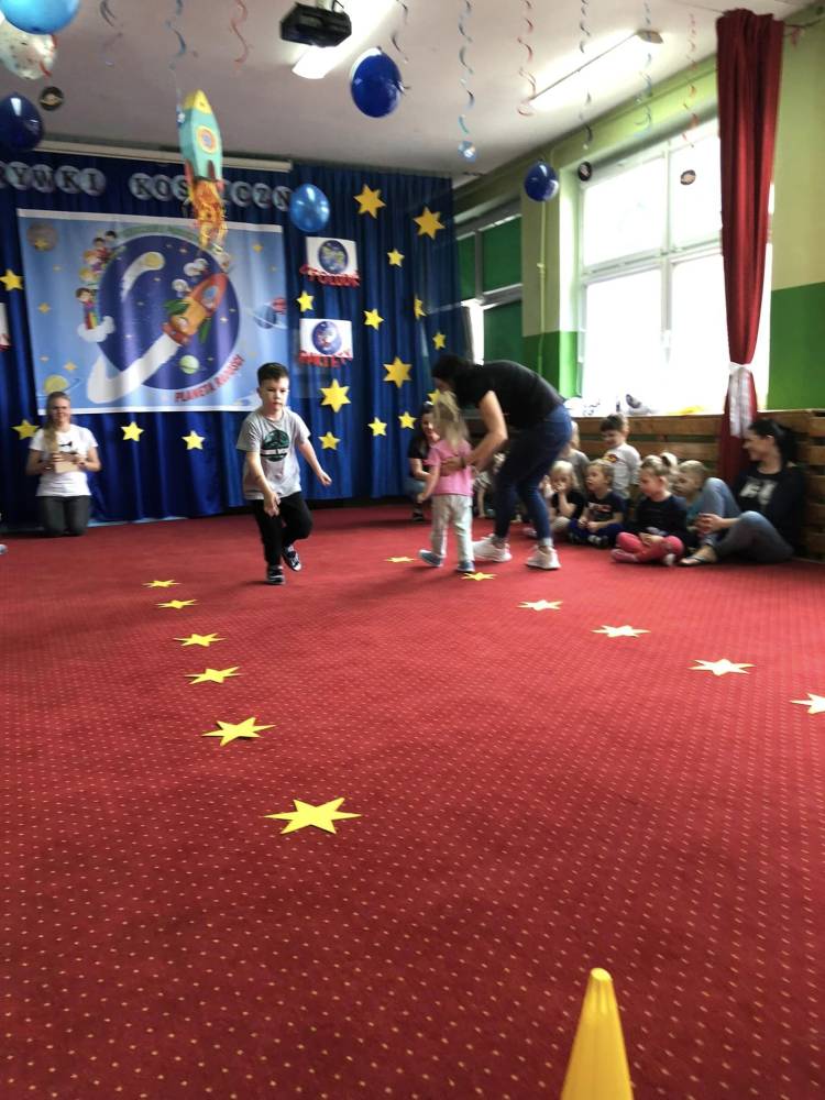 Rozgrywi Kosmiczne rozpoczeły się rozgrzewką sportową, gdzie wszyscy wspólnie przygotowali swoje ciało poprzez ćwiczenia: skłony, podskoki, przysiady do różnych konkurencji sportowych.