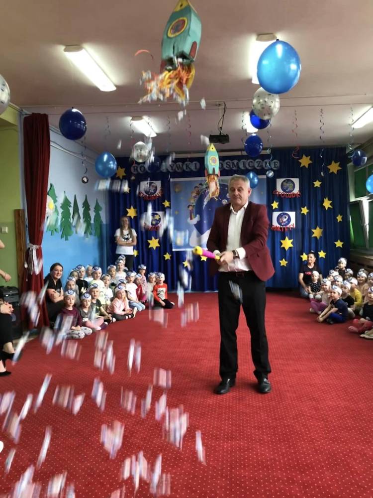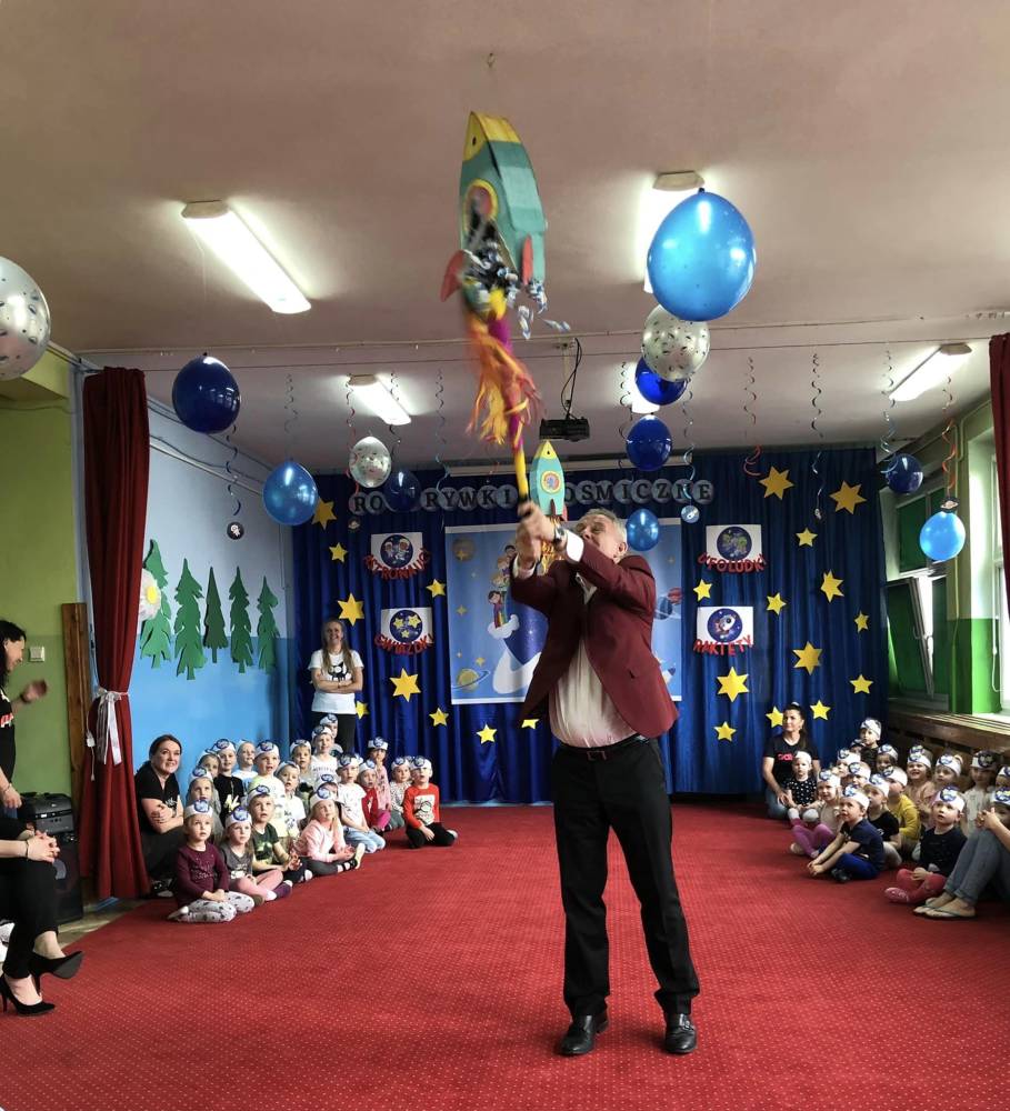 Rozbijanie piniaty przez Pana Dyrektora zakończyło ten wyjątkowy, niepowtarzalny i miły dzień w przedszkolu.