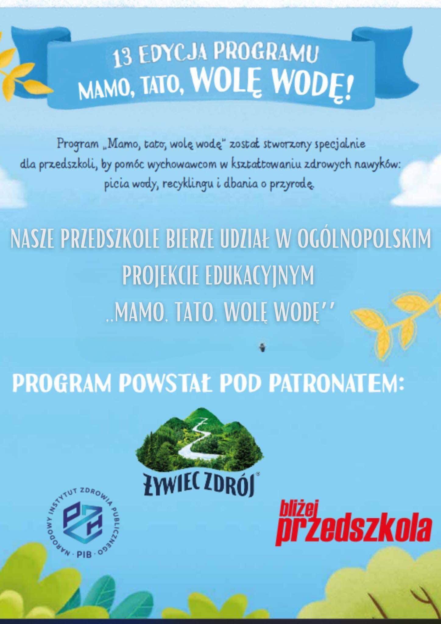 W roku szkolnym 2023/24 nasze przedszkole bierze udział w ogólnopolskich projektach edukacyjnych: