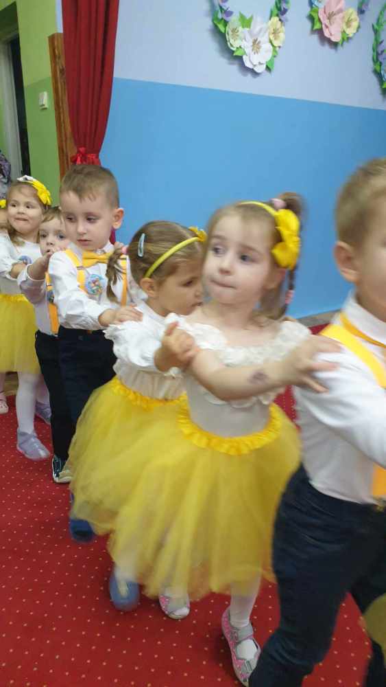 Przedszkolaki zaprezentowały program artystyczny, który wzbudził zachwyt gości. Były wierszyki, piosenki, zabawy ruchowe i tańce. Występując przed publicznością maluszki wykazały się nie tylko swoimi umiejętnościami, ale również wielką odwagą. Po części artystycznej dzieci obiecały: zgodnie bawić się w przedszkolu, przychodzić każdego dnia z uśmiechem, słuchać pań, pomagać kolegom i być dzielnym przedszkolakiem.