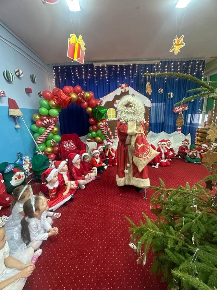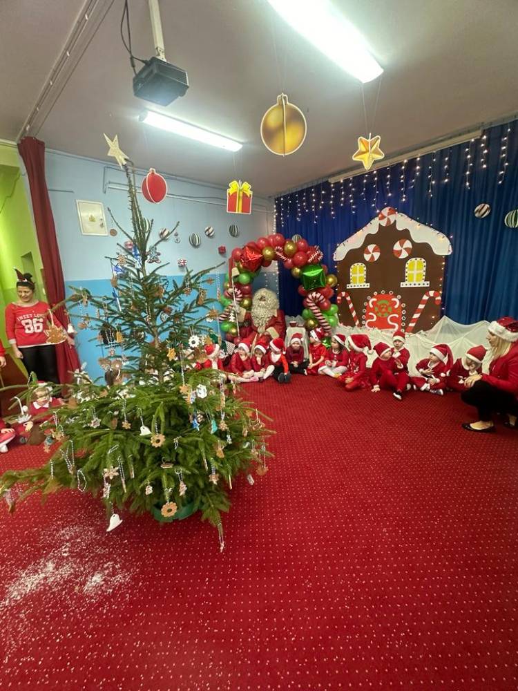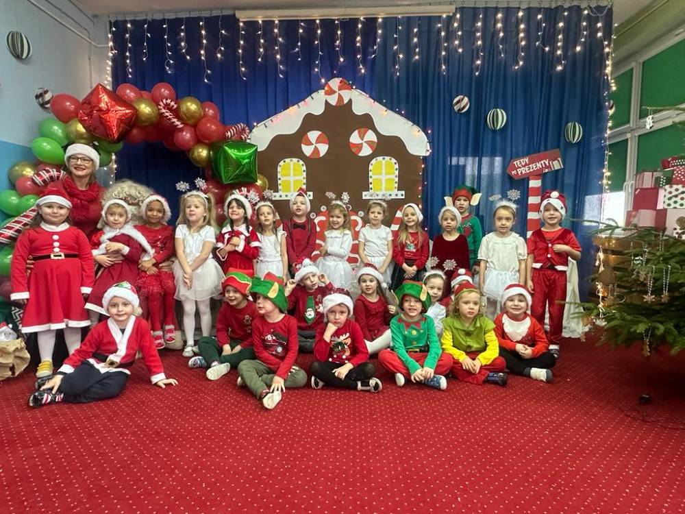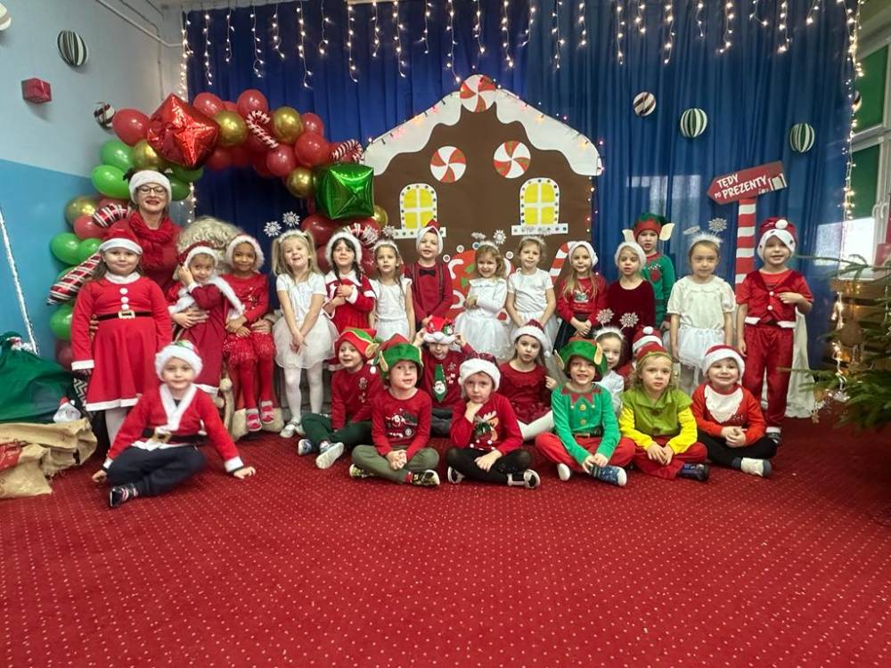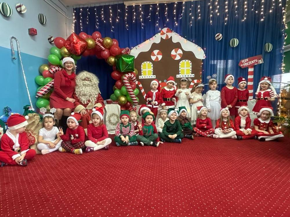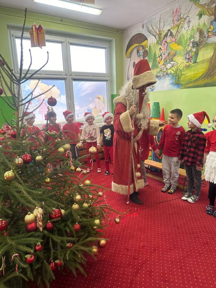 Dzieci z grupy 4 i 5 latków przygotowały dla Mikołaja miłą niespodziankę, elfy i śnieżynki zaprezentowały tańce a mali pomocnicy Świętego Mikołaja krótki występ.