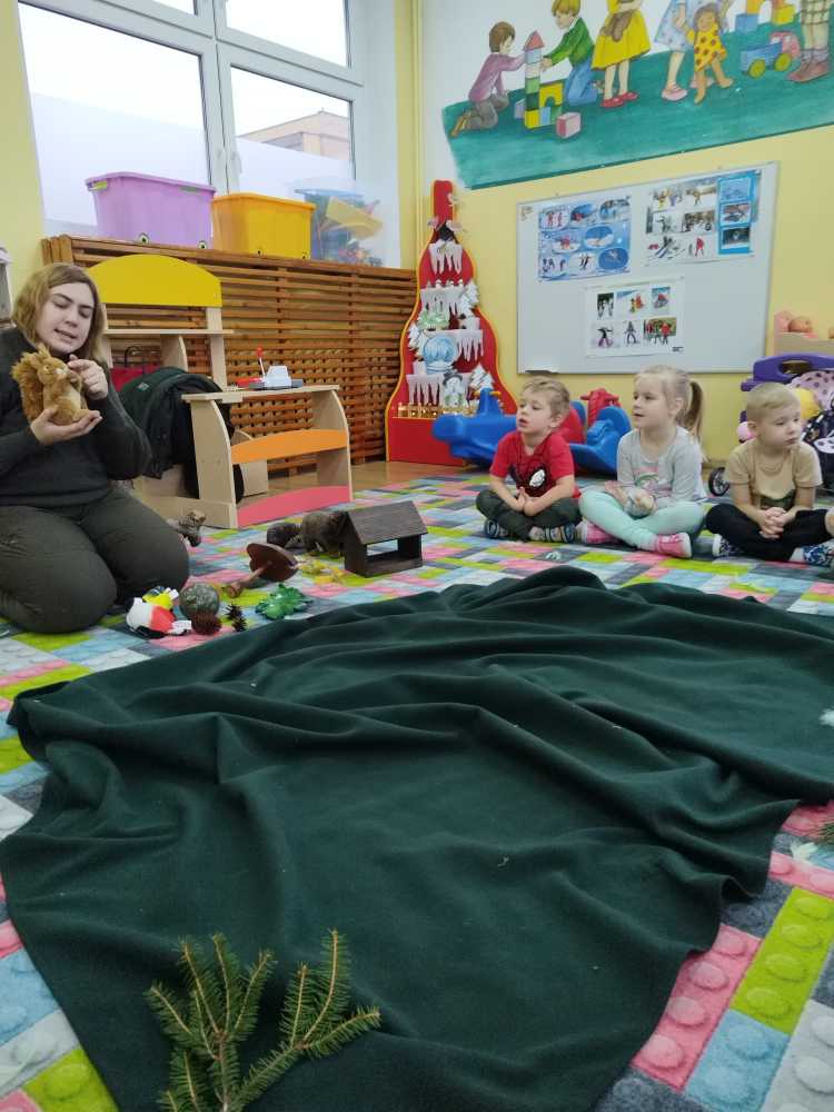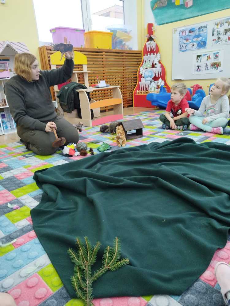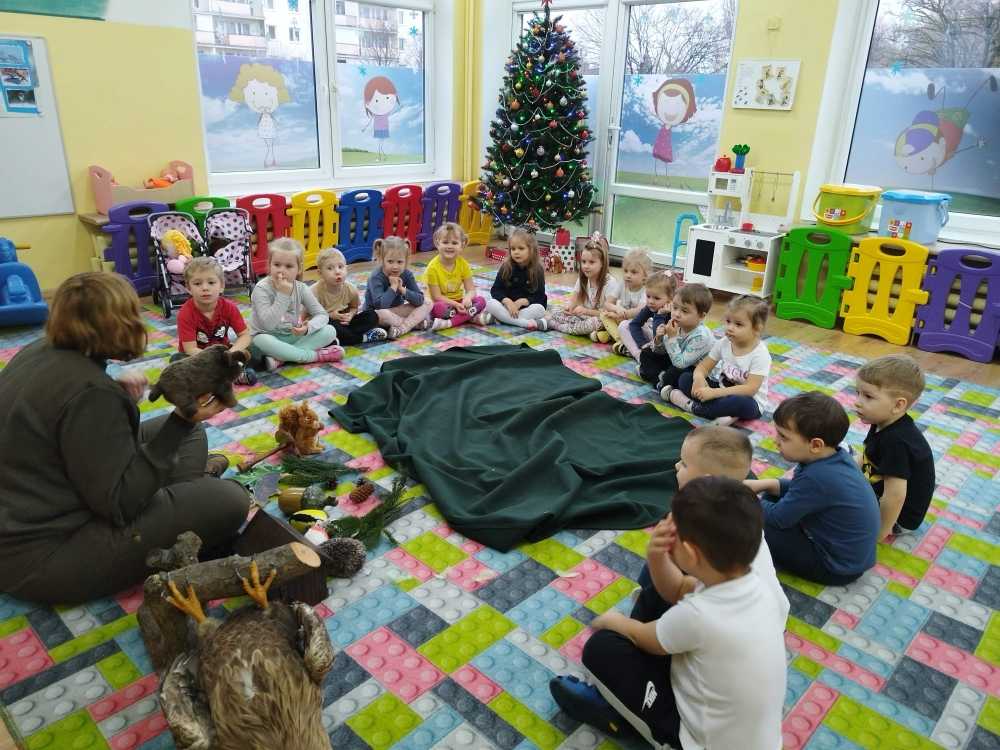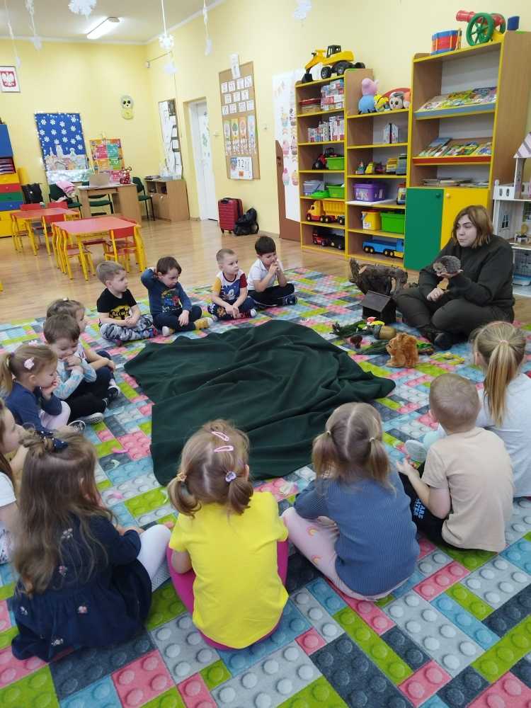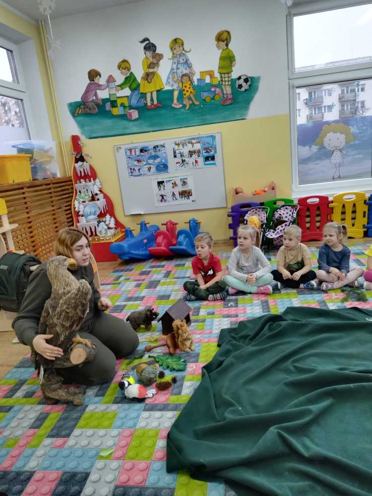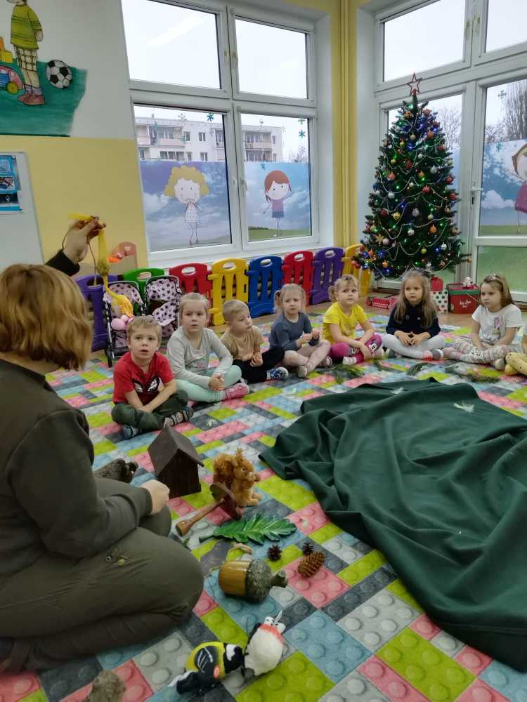 14 grudnia 2023 nasze przedszkole odwiedziła Pani z Nadleśnictwa Włocławek, która poprowadziła zajęcia z grupą 3 i 4 latków na temat „Przetrwać zimę”.