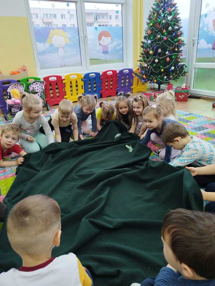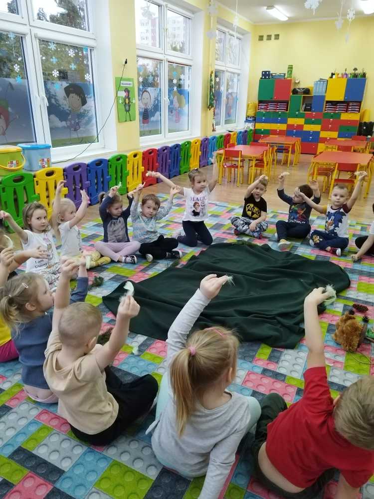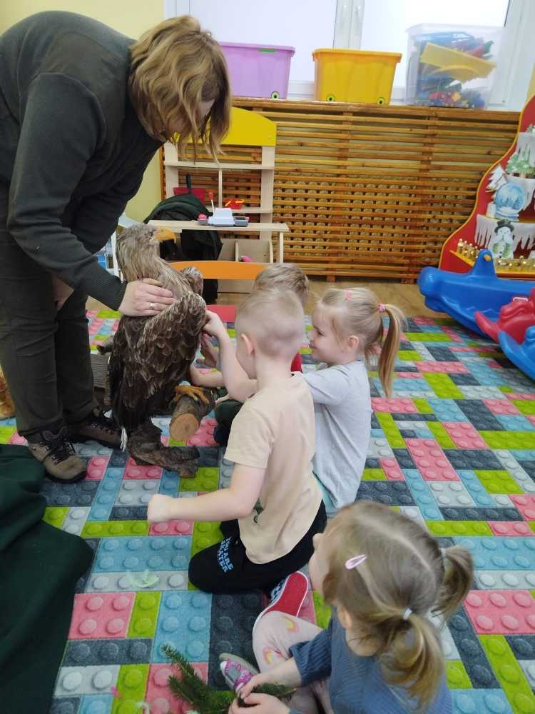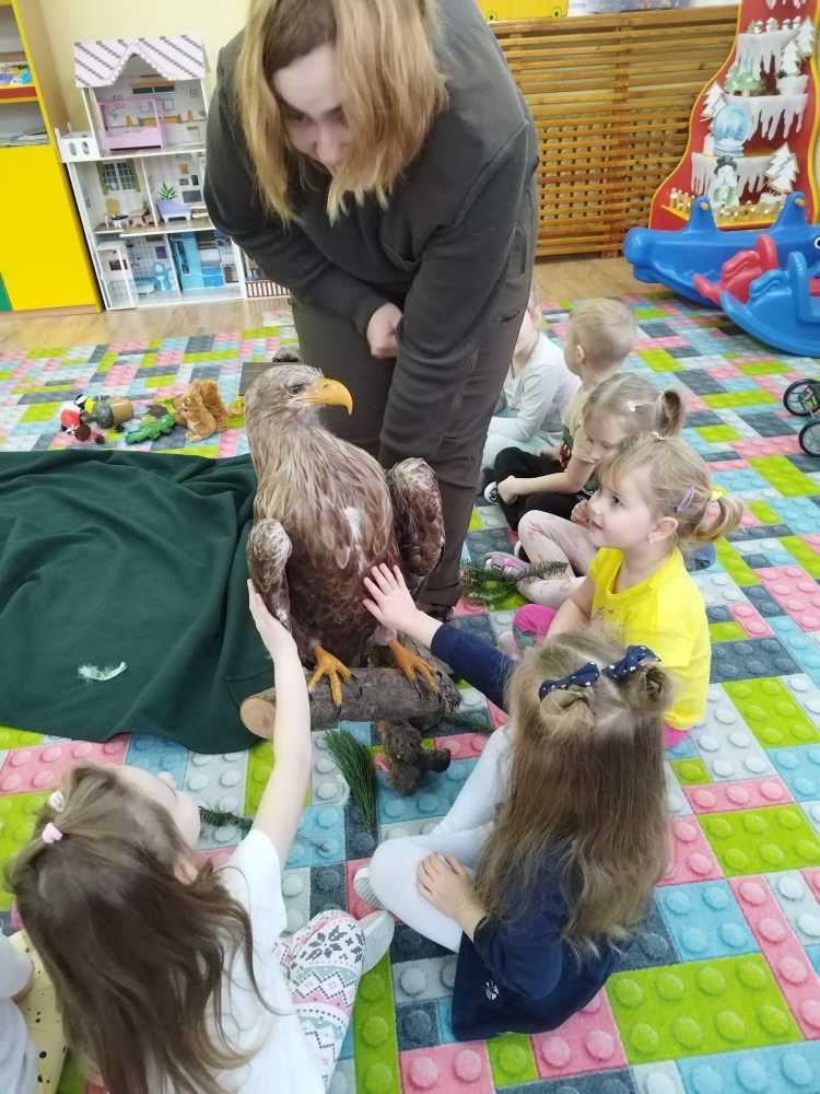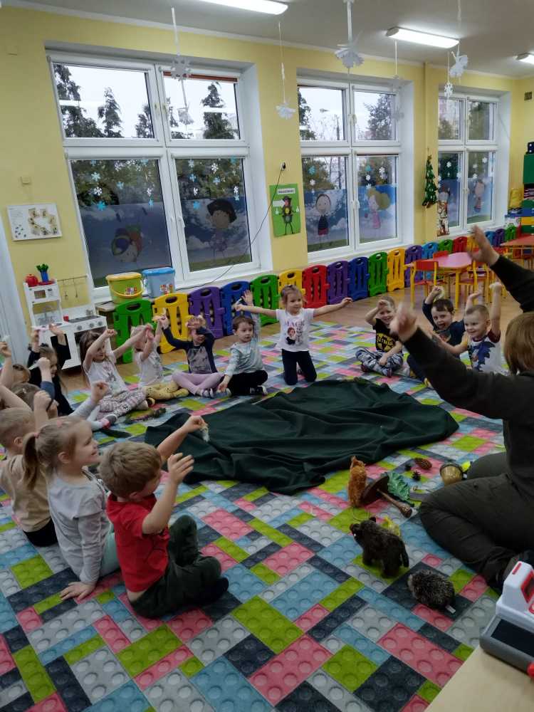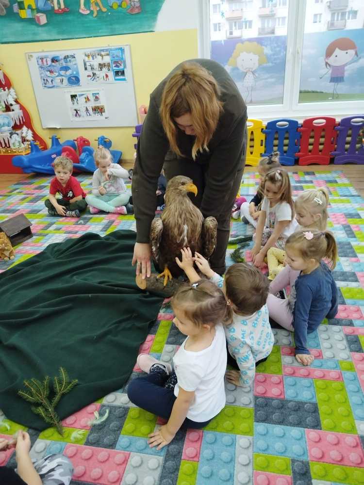 14 grudnia 2023 nasze przedszkole odwiedziła Pani z Nadleśnictwa Włocławek, która poprowadziła zajęcia z grupą 3 i 4 latków na temat „Przetrwać zimę”.