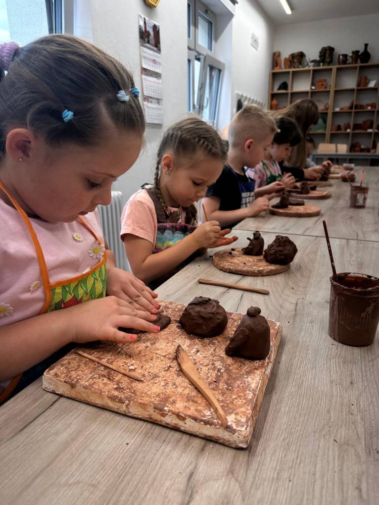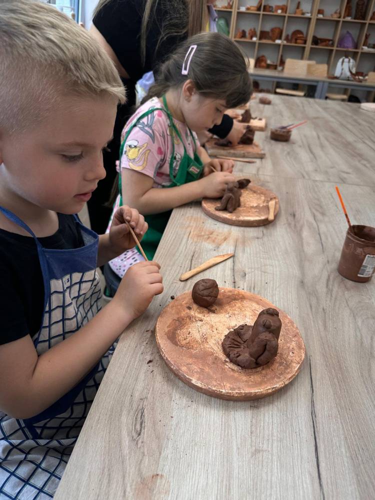 Przedszkolaki uczestniczyły w warsztatach „Ceramika i jej odmiany”, podczas których pod czujnym okiem pani instruktor tworzyły przedmioty z gliny. To był miło spędzony czas!