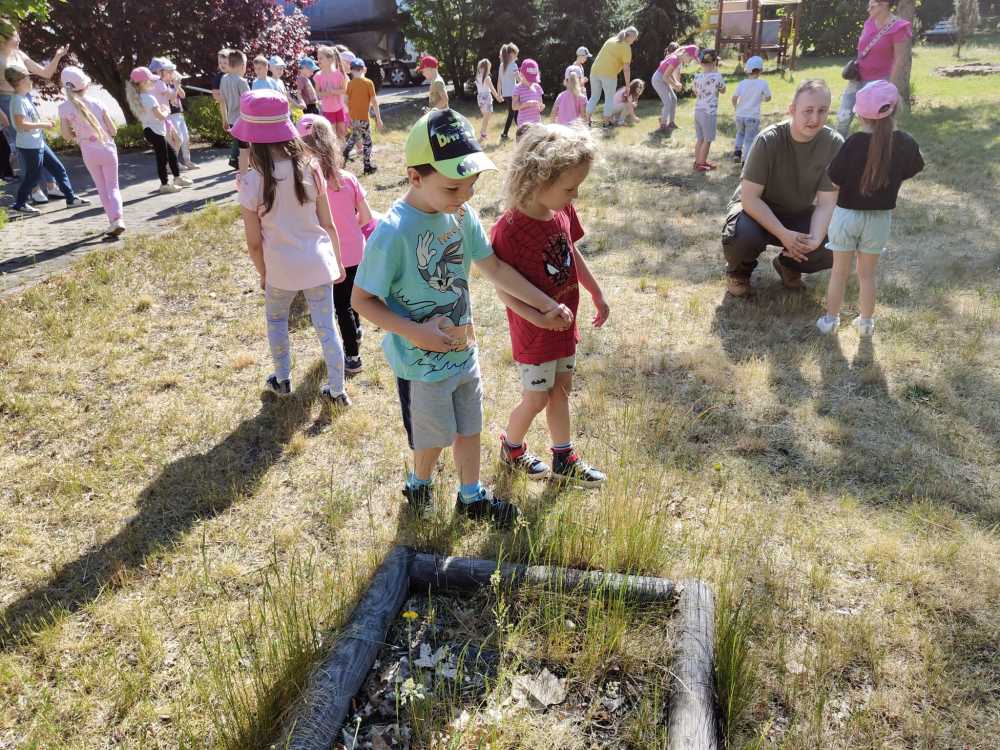 Podczas wizyty w Nadleśnictwie dzieci zapoznały się z bazą Ośrodka Edukacji Ekologicznej, w którym miały możliwość poznania ekspozycji dotyczących: rezerwatów przyrody, budowy drzew, gatunków objętych ochroną, przyrządów wykorzystywanych w codziennej pracy przez leśniczych. Następnie na świeżym powietrzu wykonywały ciekawe zadania dotyczące ekosystemu lasu. Na zakończenie wycieczki, na przedszkolaków czekało ognisko, przy którym dzieci się integrowały i miło spędziły czas.