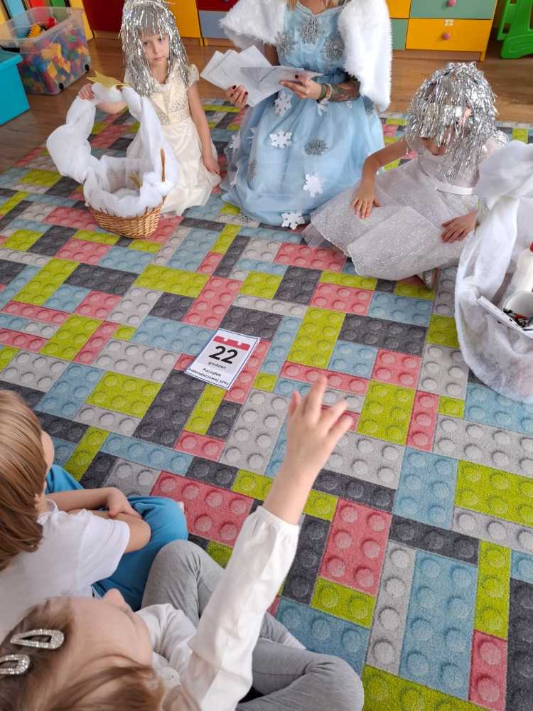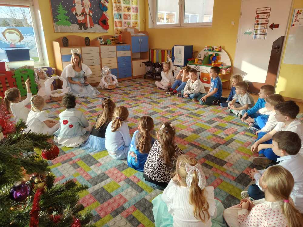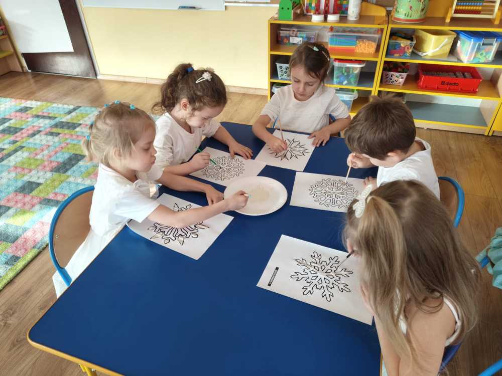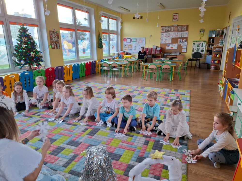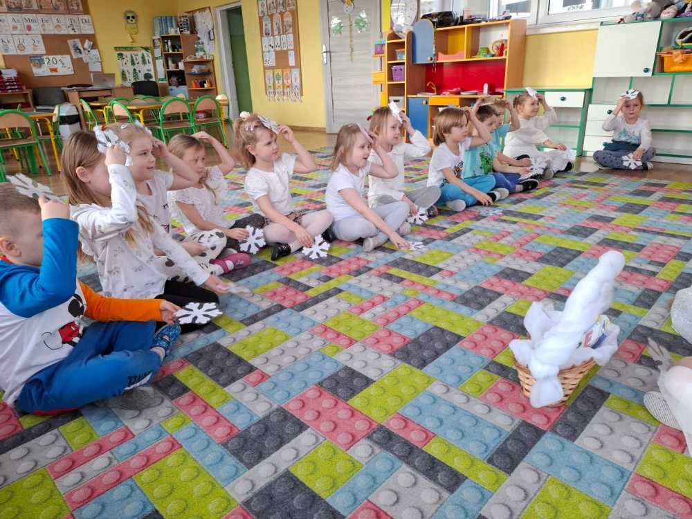 Koniec kalendarzowej jesieni stał się okazją do pożegnania starej i powitania nowej pory roku. Tak też się stało 20 grudnia żegnaliśmy Jesień, a witaliśmy wyczekiwaną przez wszystkie dzieci – Zimę. Pomimo tego, że za oknem nic na to nie wskazuje, to Pani Zima przybyła do nas witając wszystkich przedszkolaków zimową piosenką oraz zapraszając do wspólnych zimowych zabaw. Pani Zima przybliżyła również dzieciom informacje dotyczące ,,zimowych” zmian w przyrodzie. Na koniec dzieci przygotowały piękne cukrowe śnieżynki. Teraz wszyscy czekają na prawdziwie zimową pogodę.