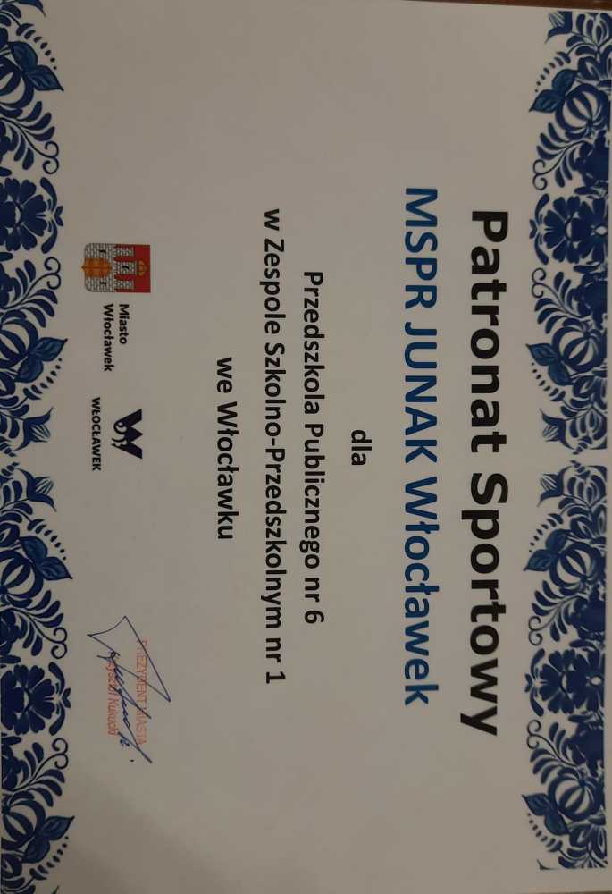 MSPR JUNAK WŁOCŁAWEK patronatem sportowym naszego przedszkola