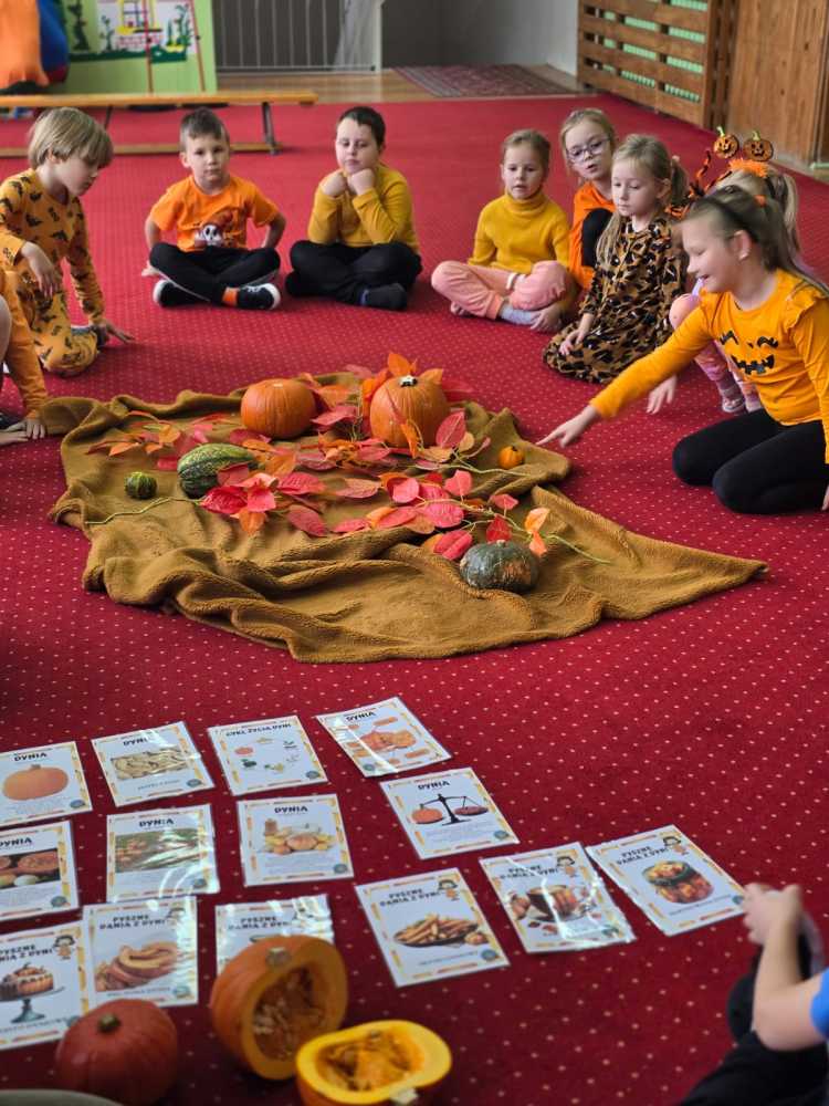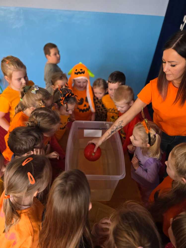 Podczas zajęć przedszkolaki przeprowadzały eksperymenty z dynią, obserwując jej właściwości, a także wspólnie odkrywały, co kryje się w jej wnętrzu. Nie zabrakło również zabaw muzycznych i ruchowych, które wprowadziły wszystkich w radosny, jesienny nastój.