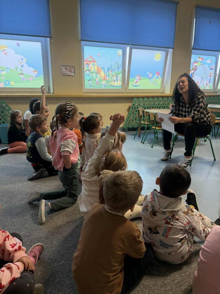 Celem zajęć było połączenie ruchu, słuchania oraz twórcza aktywność związana z literaturą dziecięcą.