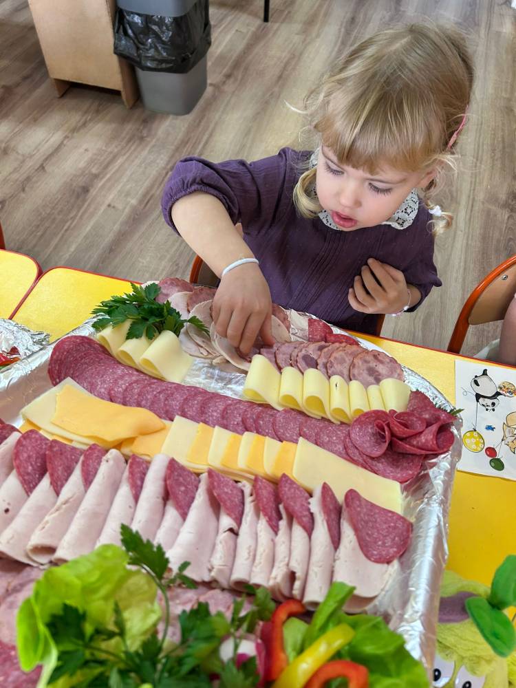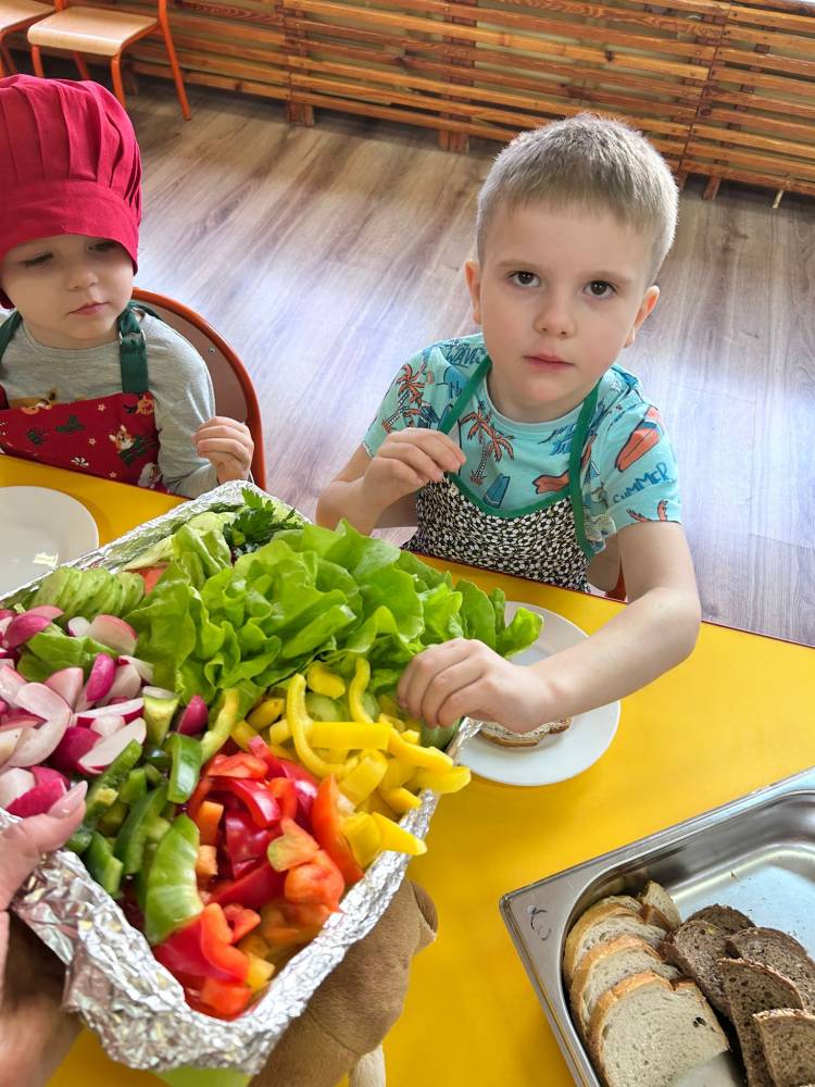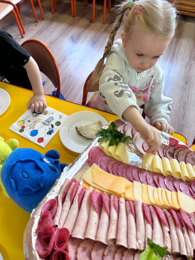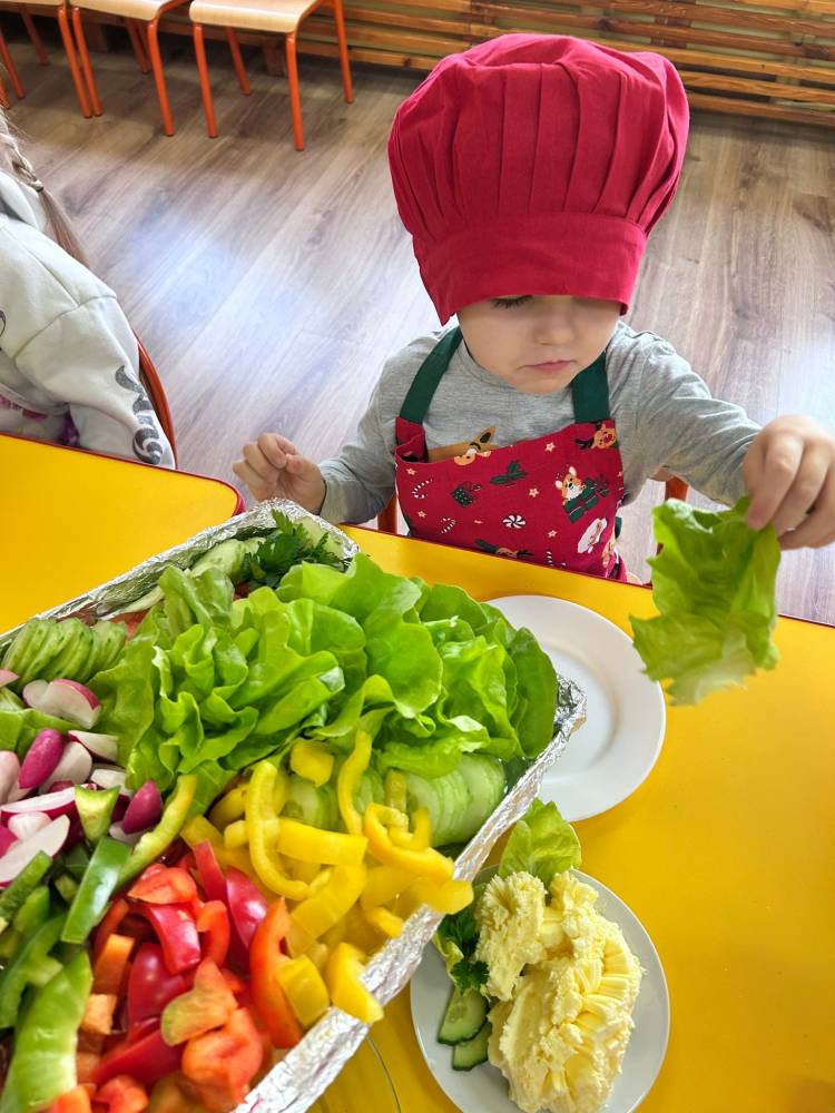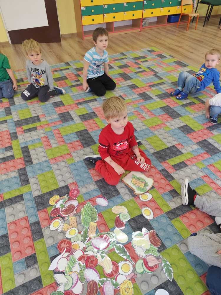 W ramach ogólnopolskiej akcji „Śniadanie daje moc” dzieci utrwaliły wiedzę na temat zdrowego odżywiania oraz roli pełnowartościowego śniadania w codziennym funkcjonowaniu. Podczas zajęć przypomniały sobie, jak ważne jest wybieranie produktów bogatych w witaminy i składniki odżywcze, a także jak ogromne znaczenie ma picie wody dla zdrowia i dobrego samopoczucia. Najważniejszym punktem zajęć było samodzielne przygotowanie zdrowego śniadania. Dzieci z zaangażowaniem komponowały swoje kanapki, ucząc się przy tym właściwych nawyków żywieniowych oraz rozwijając samodzielność.