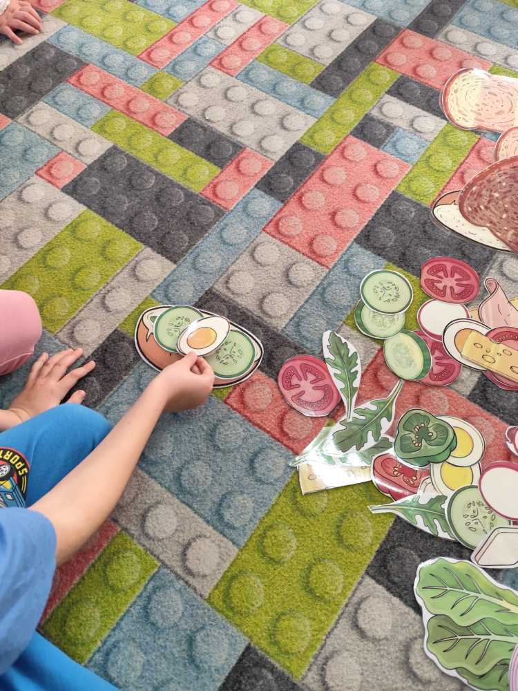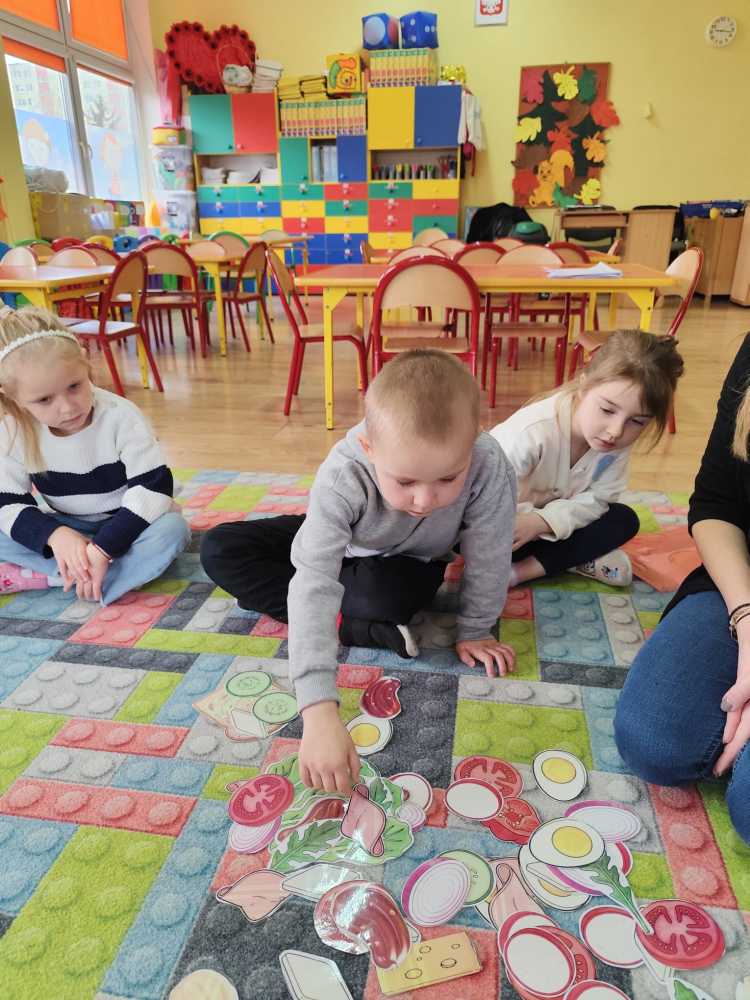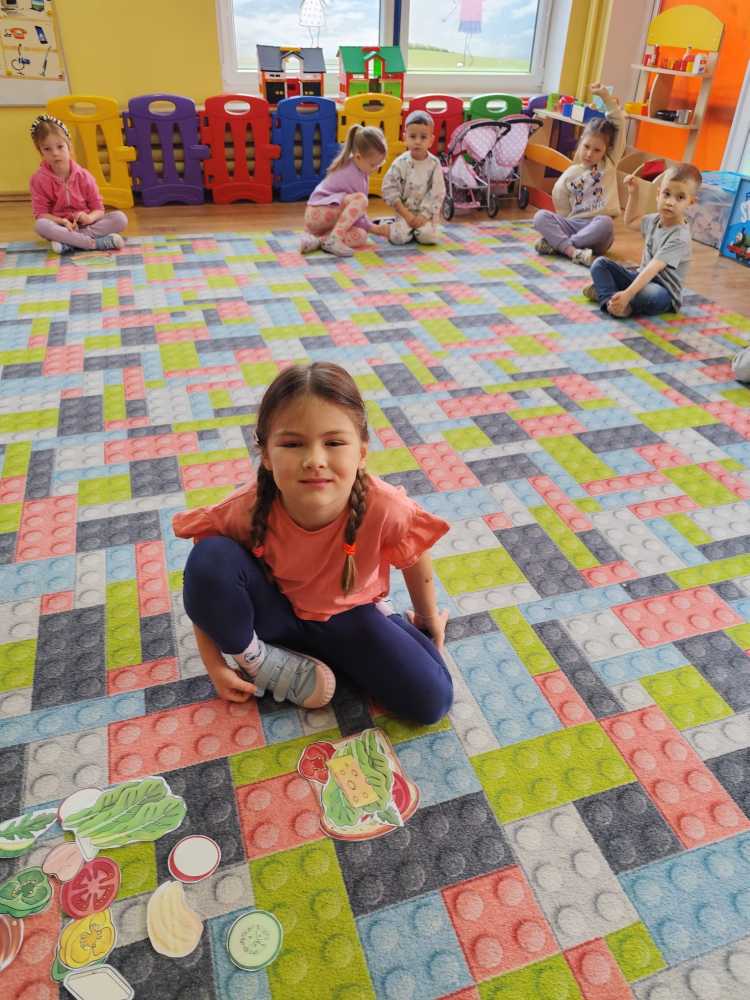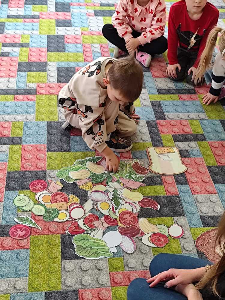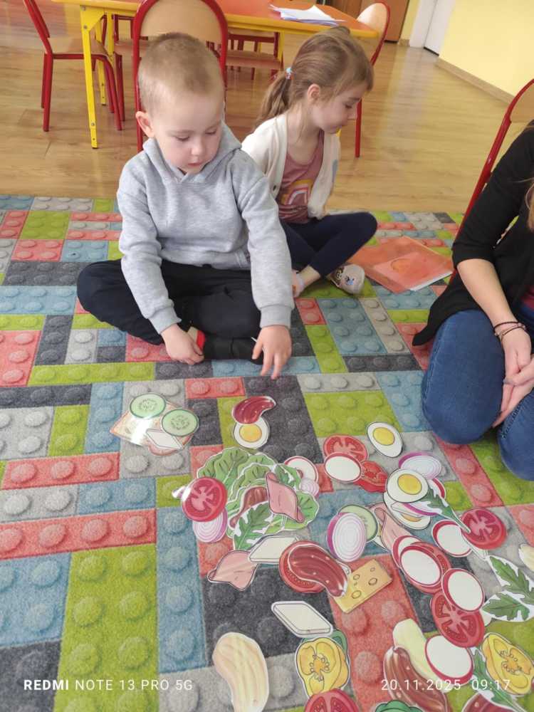W ramach ogólnopolskiej akcji „Śniadanie daje moc” dzieci utrwaliły wiedzę na temat zdrowego odżywiania oraz roli pełnowartościowego śniadania w codziennym funkcjonowaniu. Podczas zajęć przypomniały sobie, jak ważne jest wybieranie produktów bogatych w witaminy i składniki odżywcze, a także jak ogromne znaczenie ma picie wody dla zdrowia i dobrego samopoczucia. Najważniejszym punktem zajęć było samodzielne przygotowanie zdrowego śniadania. Dzieci z zaangażowaniem komponowały swoje kanapki, ucząc się przy tym właściwych nawyków żywieniowych oraz rozwijając samodzielność.