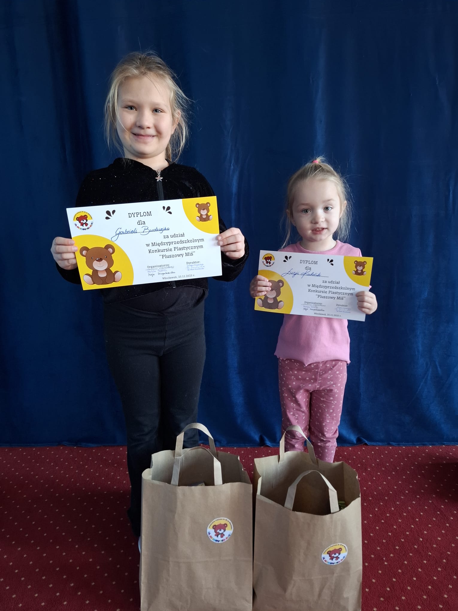 Podziękowania dla Łucji Katolik z grupy 3-4 latki oraz Gabrieli Budziejko z grupy 6 – latki za udział w międzyprzedszkolnym konkursie plastycznym ,,Pluszowy miś’’ organizowanym przez Przedszkole Publiczne nr 35 we Włocławku.