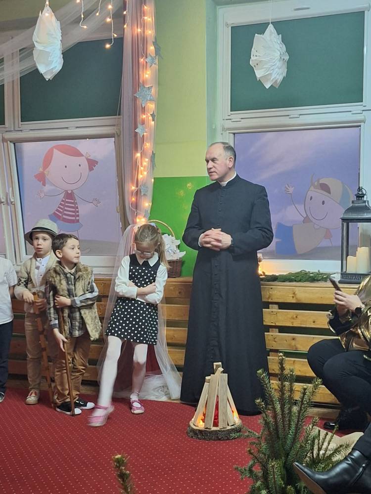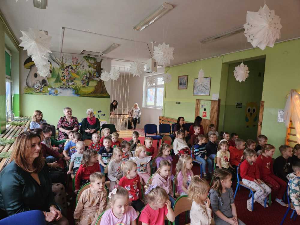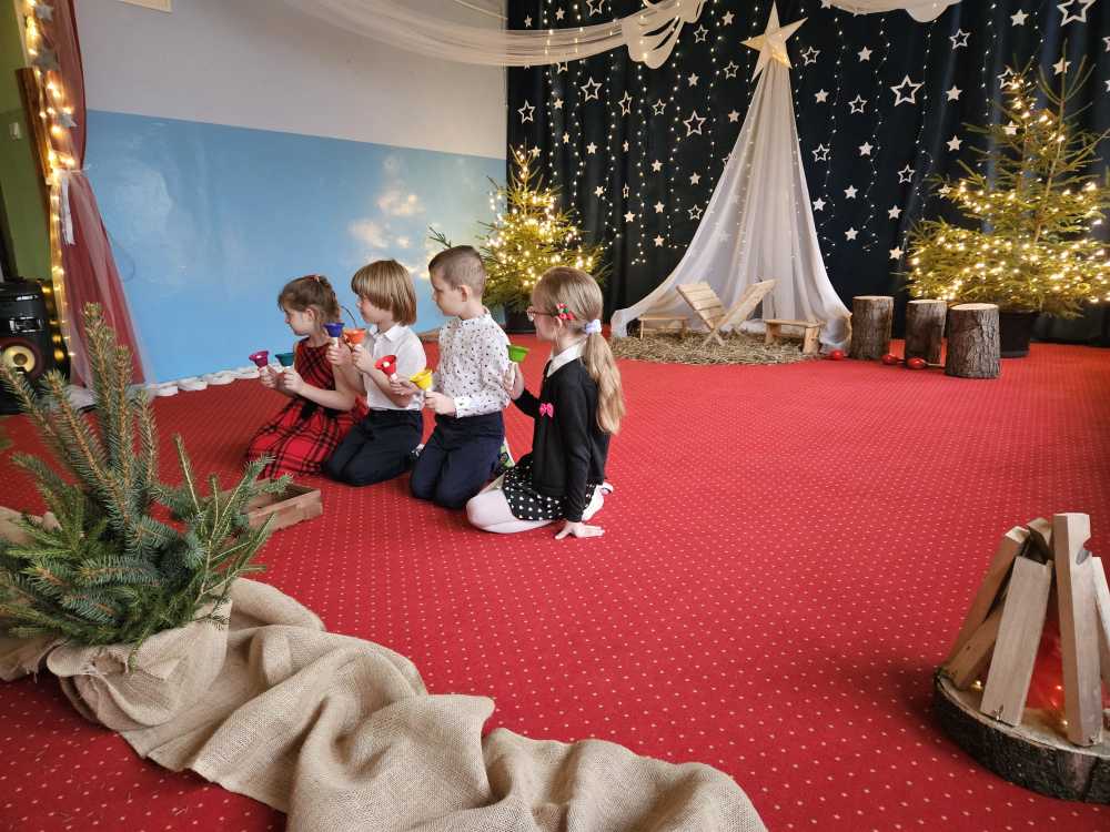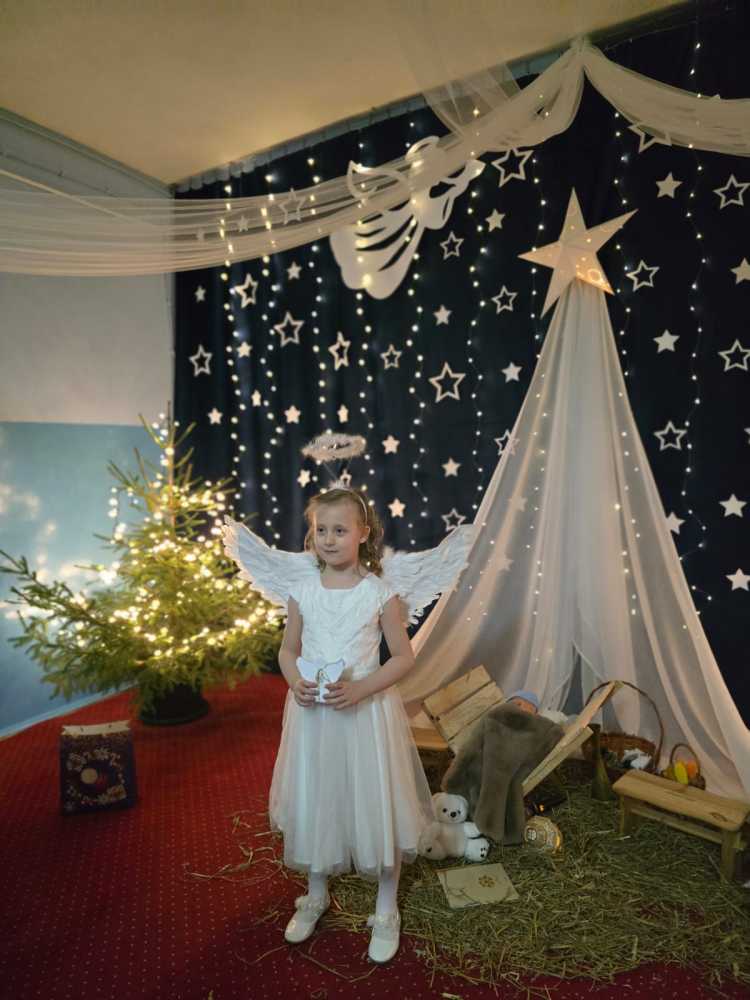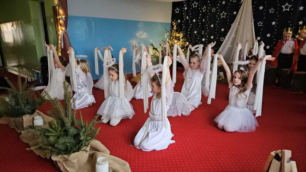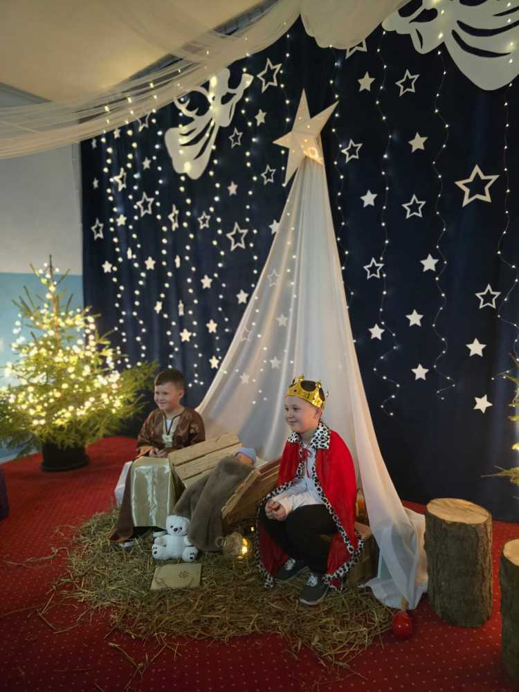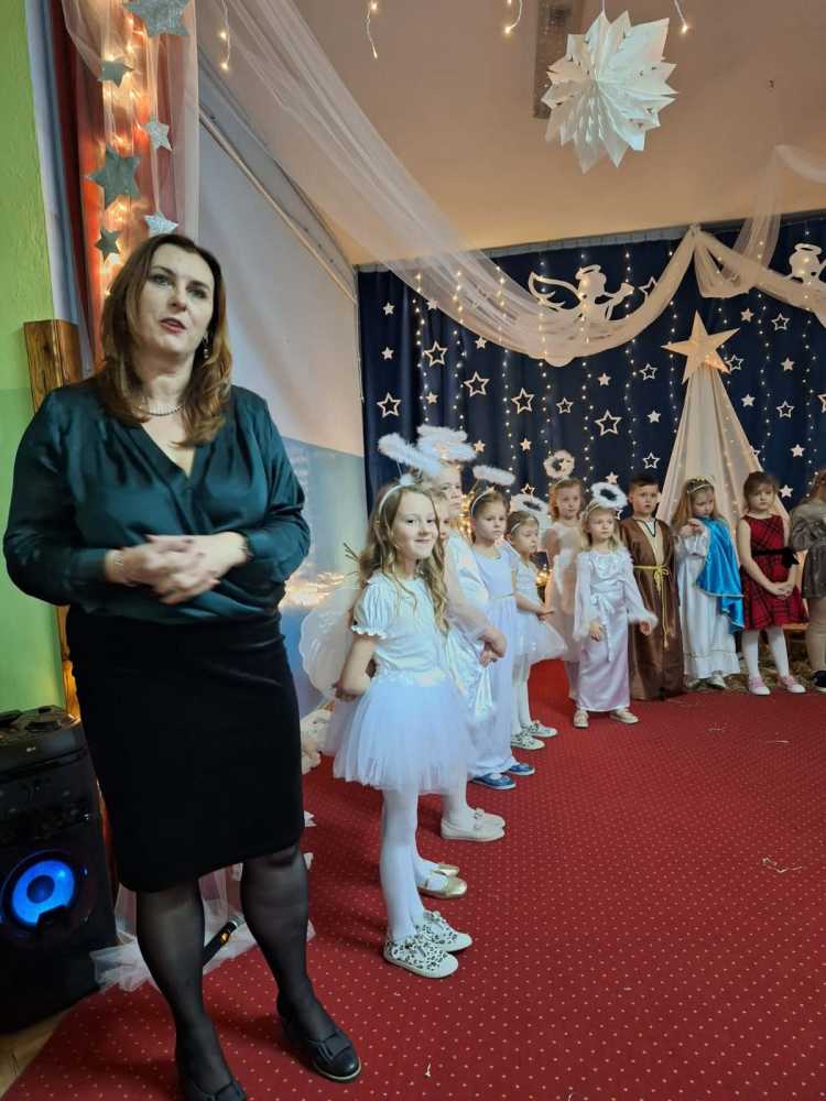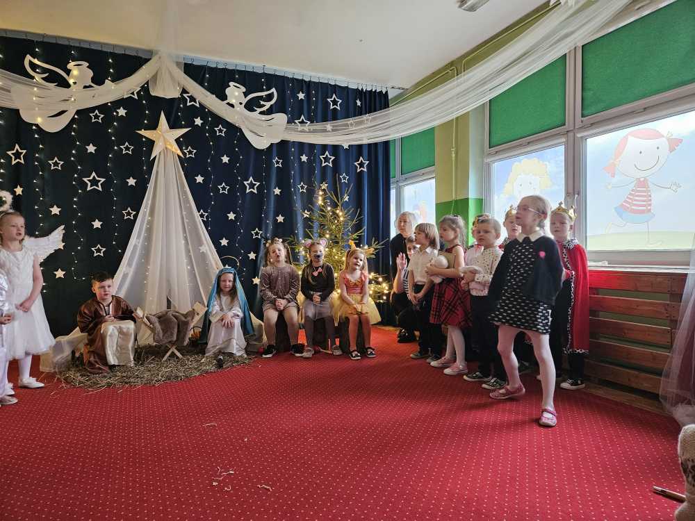 18 grudnia 2025 r. w naszym przedszkolu odbyły się Jasełka Bożonarodzeniowe przygotowane przez grupę 6 –latków . Przedstawienie było wyjątkowe. Mali aktorzy z ogromnym zaangażowaniem i radością wcielili się w role aniołów, pasterzy i postaci bożonarodzeniowej historii. Piękne stroje, nastrojowa muzyka, śpiew kolęd i szczere, dziecięce emocje sprawiły, że niejednemu widzowi zakręciła się łza wzruszenia w oku.