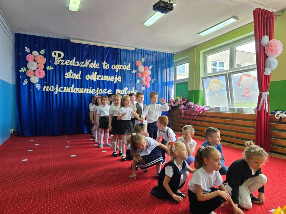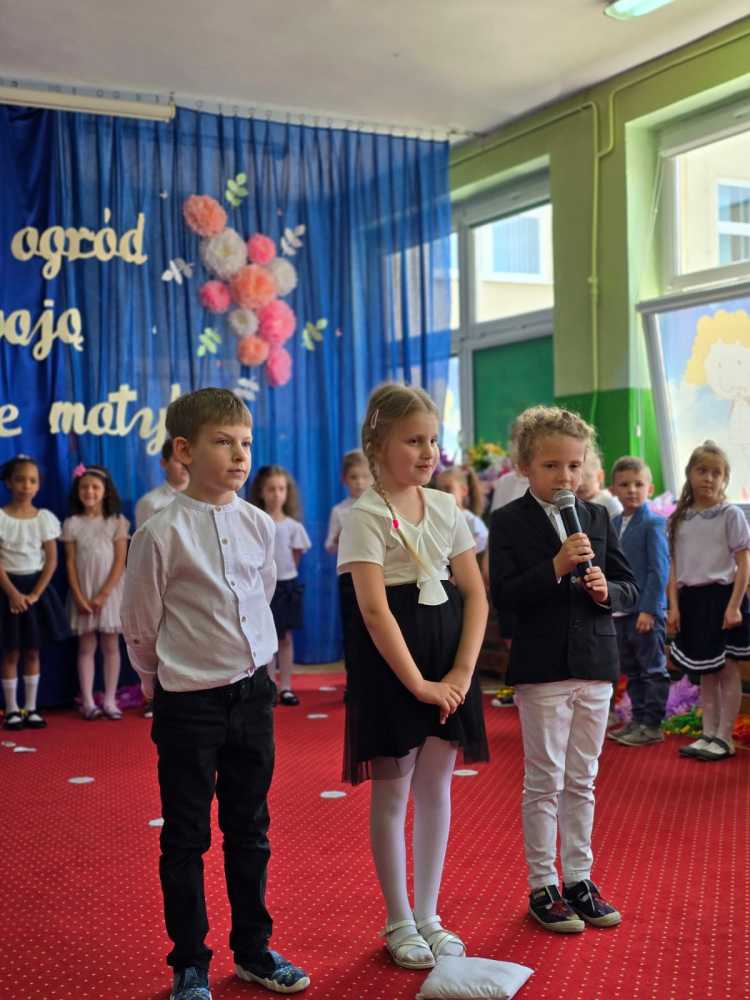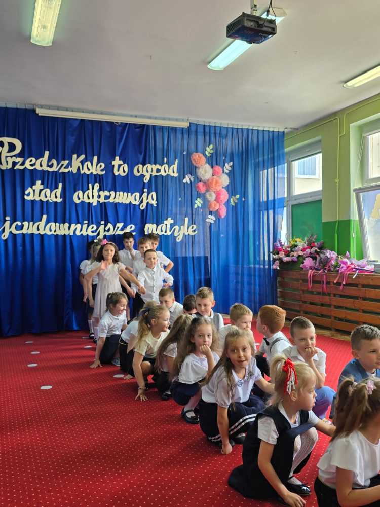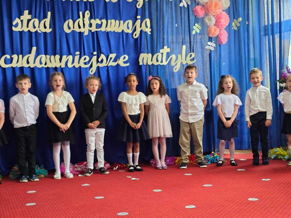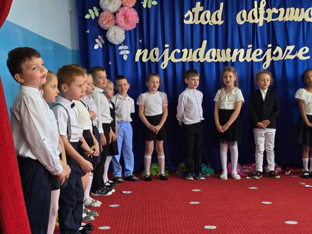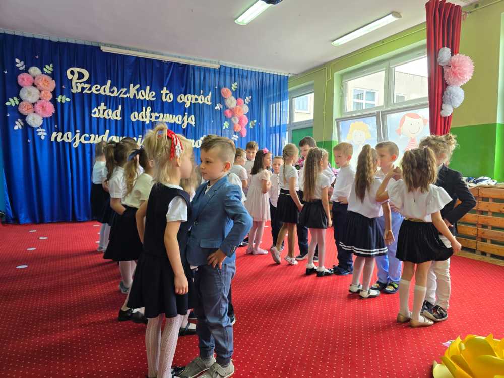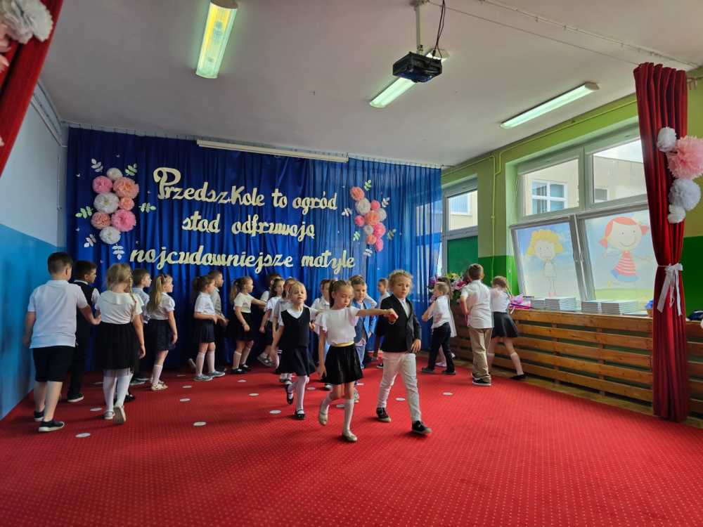 17 czerwca odbyło się uroczyste zakończenie przedszkola przez dzieci 6 – letnie. Był to dzień pełen emocji i wzruszeń. Cztery lata wspólnych zajęć i zabaw minęły bardzo szybko i nadszedł czas wakacji i pożegnań. Na tak ważnej uroczystości nie mogło zabraknąć polskiego tańca narodowego – Poloneza, którym dzieci rozpoczęły swój ostatni występ w przedszkolu. Następnie zaprezentowały wiersze, które były przypomnieniem wspólnie spędzonych lat oraz wyrażały wdzięczność dla wszystkich pracowników przedszkola za opiekę, przekazaną wiedzę oraz umiejętności. Nadszedł także czas podziękowań zarówno dzieciom i wręczenie nagród oraz kochanym rodzicom. Słodkim poczęstunkiem zakończyliśmy ten miły , lecz wzruszający dzień. Drodzy absolwenci życzymy Wam , aby następny etap w Waszym życiu był początkiem wspaniałej, pełnej sukcesów drogi.