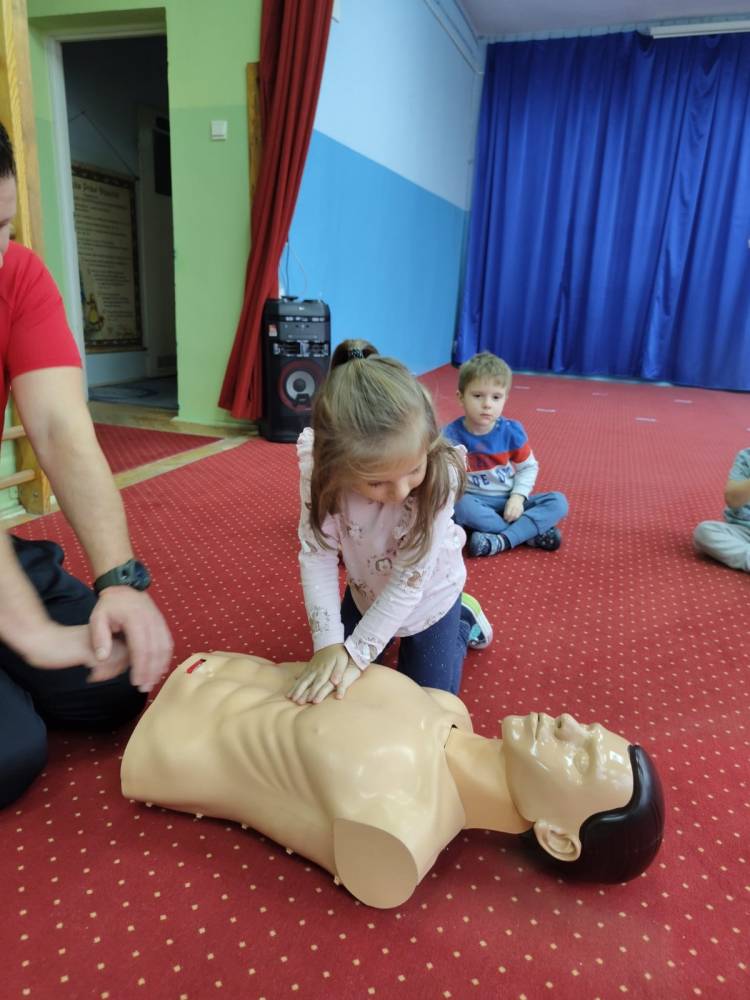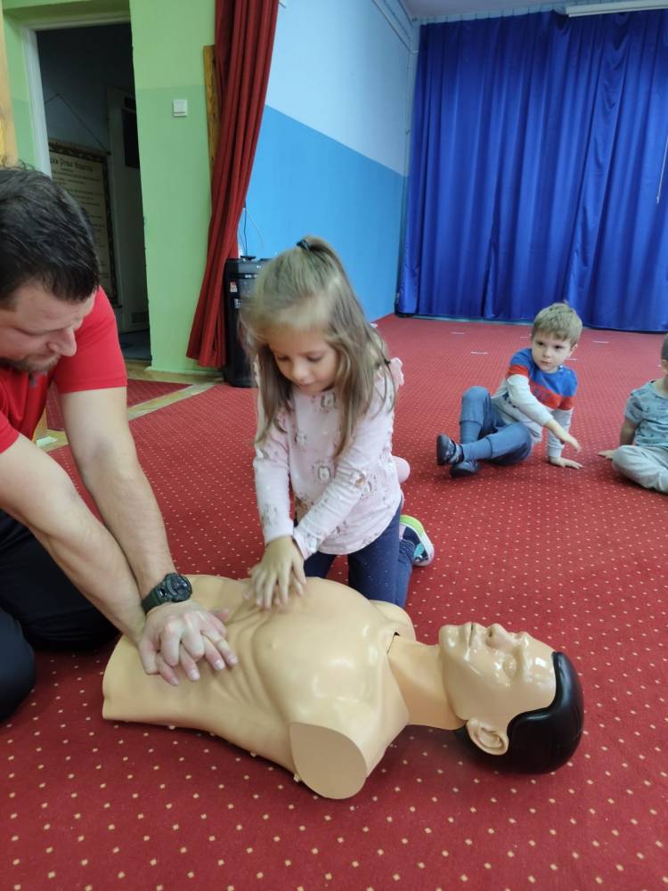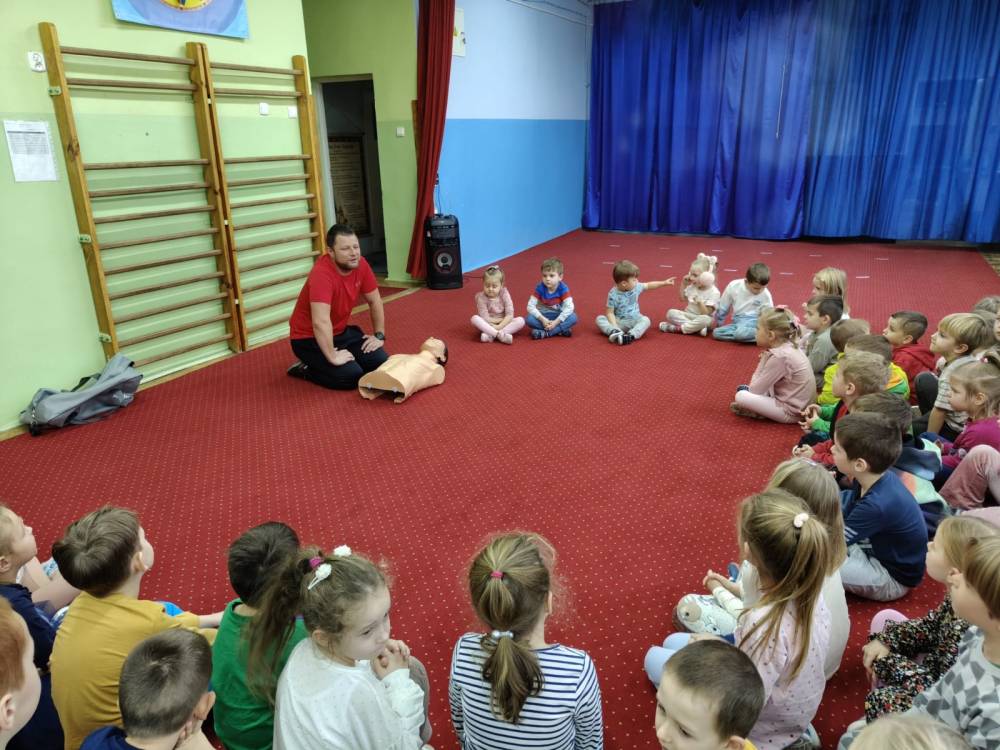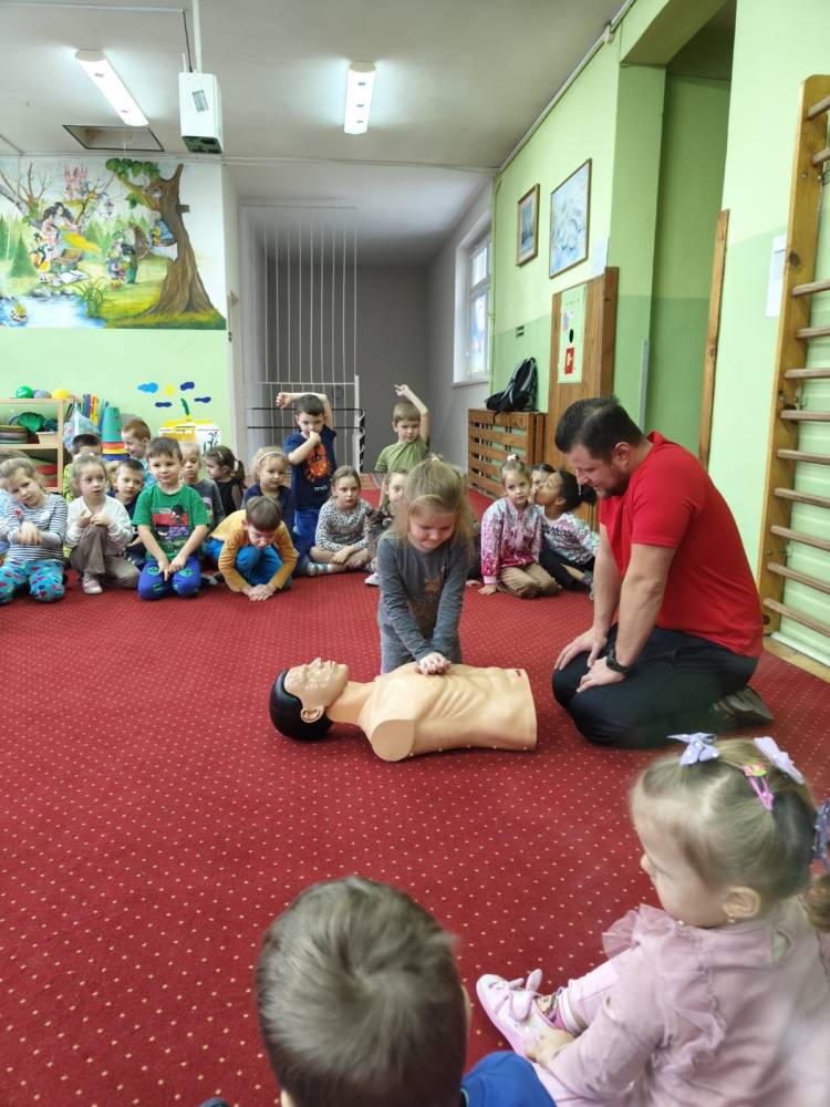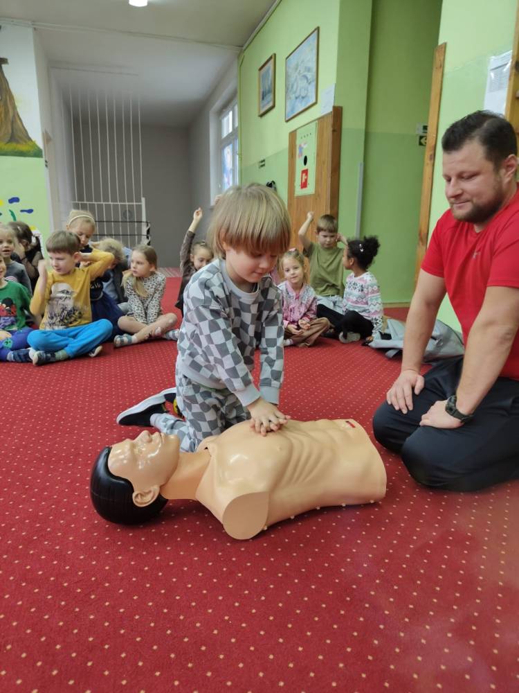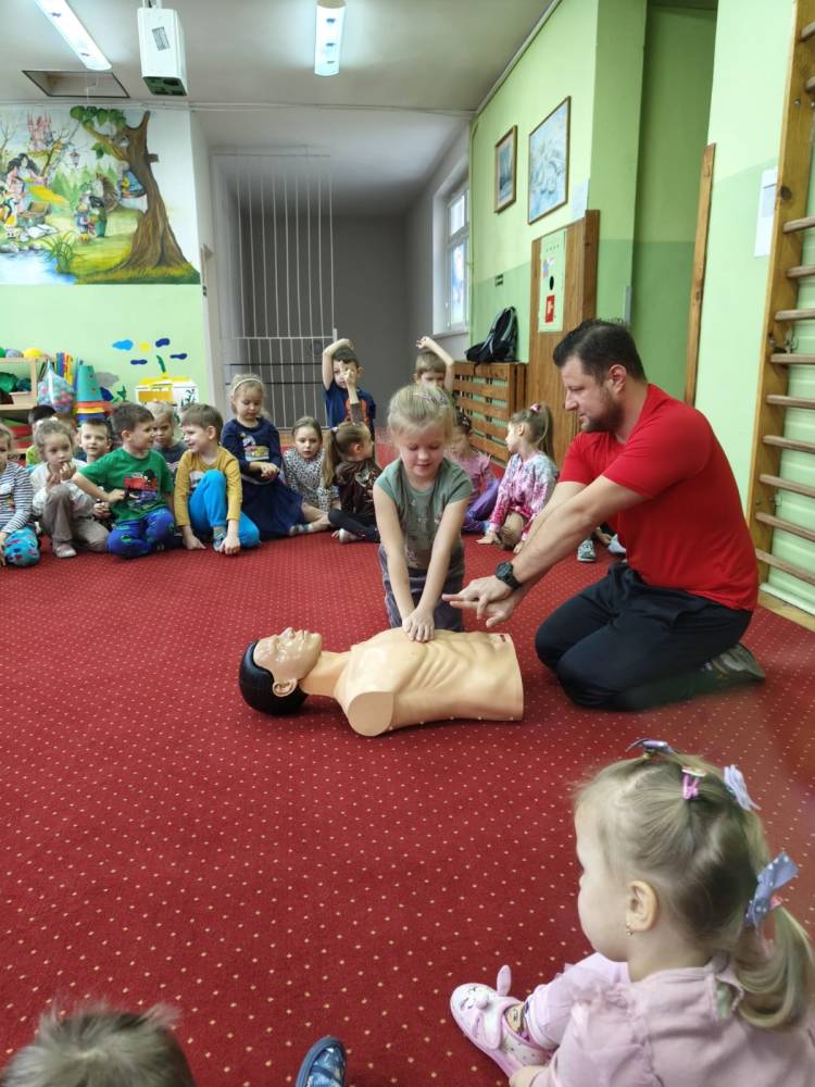 29 listopada w naszym przedszkolu odbyły się zajęcia z udzielania pierwszej pomocy przedmedycznej. Spotkanie miało na celu kształtowanie pozytywnych i bezpiecznych postaw oraz zapoznanie dzieci z podstawowymi czynnościami ratowniczymi w przypadku nieobecności osób dorosłych oraz przypomniały sobie numery alarmowe. Była to doskonała lekcja – połączenie zabawy z przekazywaniem jakże istotnej wiedzy, która może przynieść nieoceniony efekt – ratowanie życia. Wiele emocji wzbudził pokaz czynności z zakresu resuscytacji wykonany na fantomie. Po tej lekcji dzieci już wiedzą, na czym polega ich rola w sytuacji, kiedy trzeba komuś pomóc.