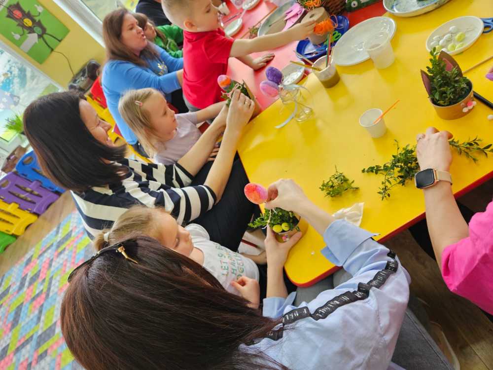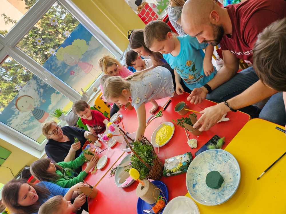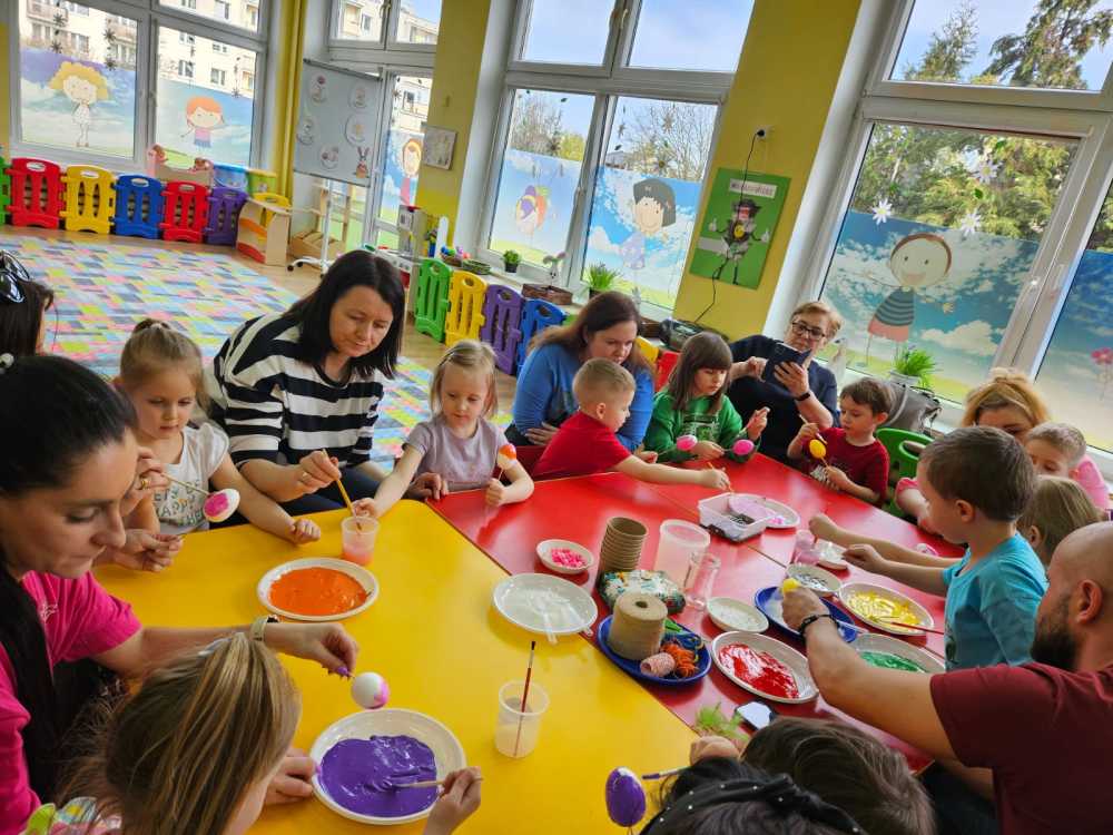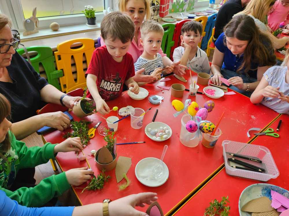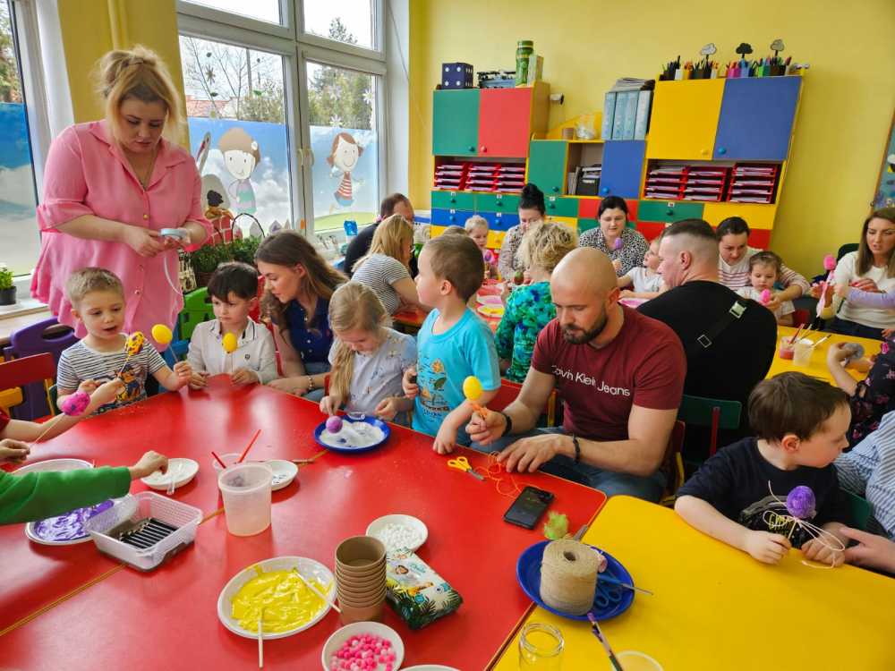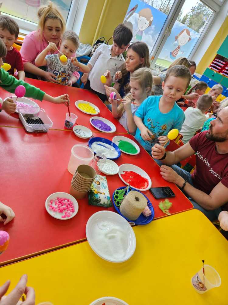 Na zajęciach dzieci wraz z rodzicami wykonały piękne wielkanocne ozdoby.