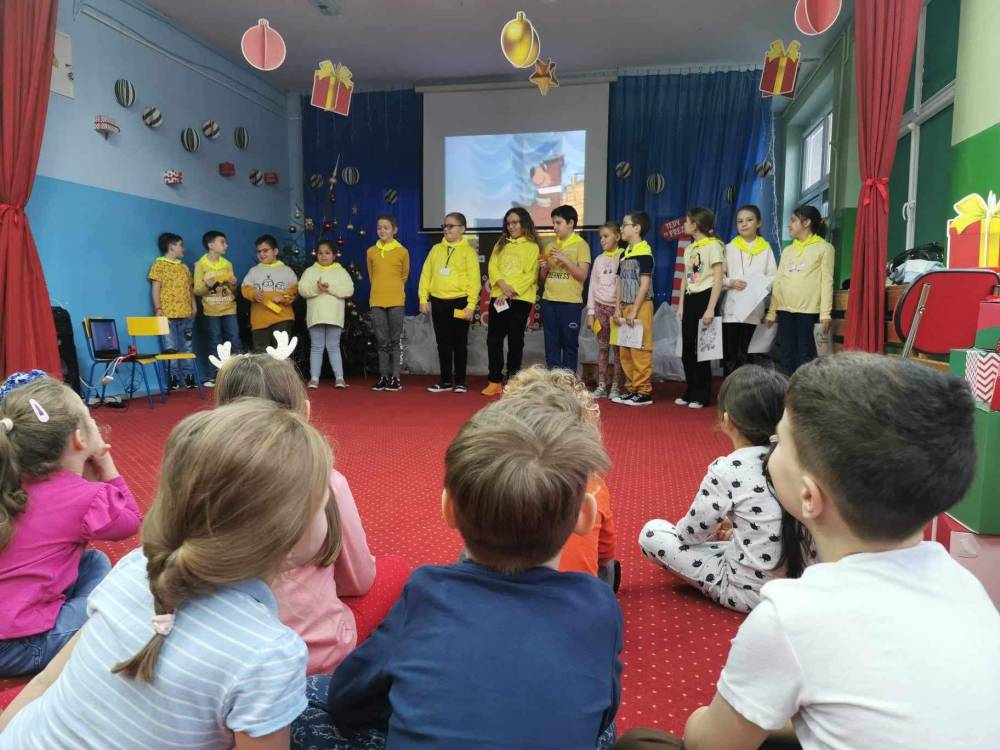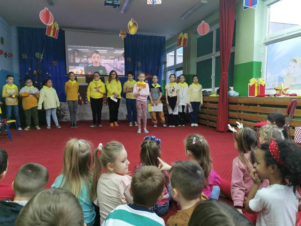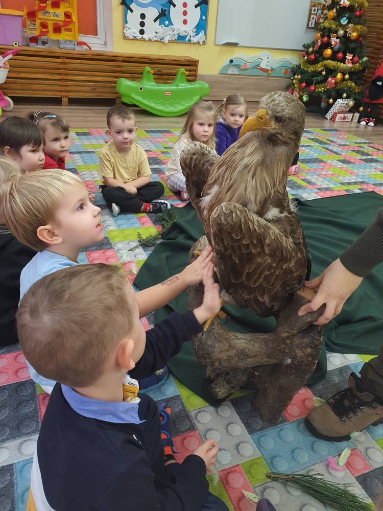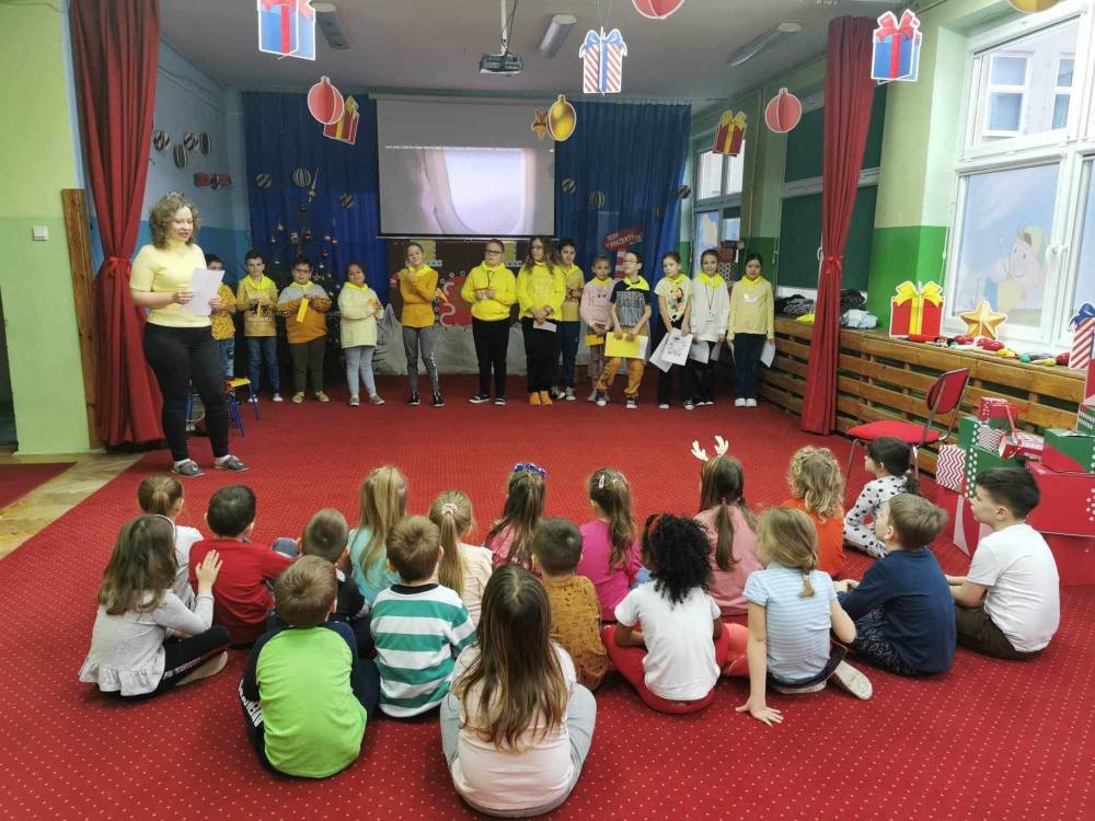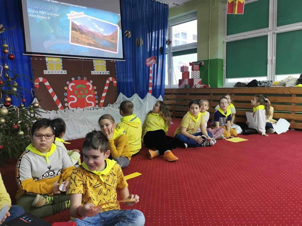 12 grudnia 2023 r. dzieci z grupy 5 – latków odwiedzili uczniowie Szkoły Podstawowej nr 20 w ZSP nr 1 wraz z nauczycielką języka angielskiego Panią Magdaleną Żychowicz. Uczniowie z klasy III a realizują projekt w ramach Natodowego Programu Czytelnictwa: Welcome to Yellowstone i postanowili przygotować dla przedszkolaków prezentację dotyczącą parku Yellowstone na podstawie jednej z nowozakupionych pozycji wydawniczych do szkolnej biblioteki: „Którędy do Yellowstone? Dzika podróż po parkach narodowych”. Podczas spotkania uczniowie prezentowali wybrane ilustracje związane z Parkiem Yellowstone i nazywali je w języku angielskim. Nasze przedszkolaki znakomicie poradziły sobie ze wszystkimi zadaniami związanymi z już znanym im słownictwem, jak również tym nowo poznanym. Dziękujemy za odwiedziny!