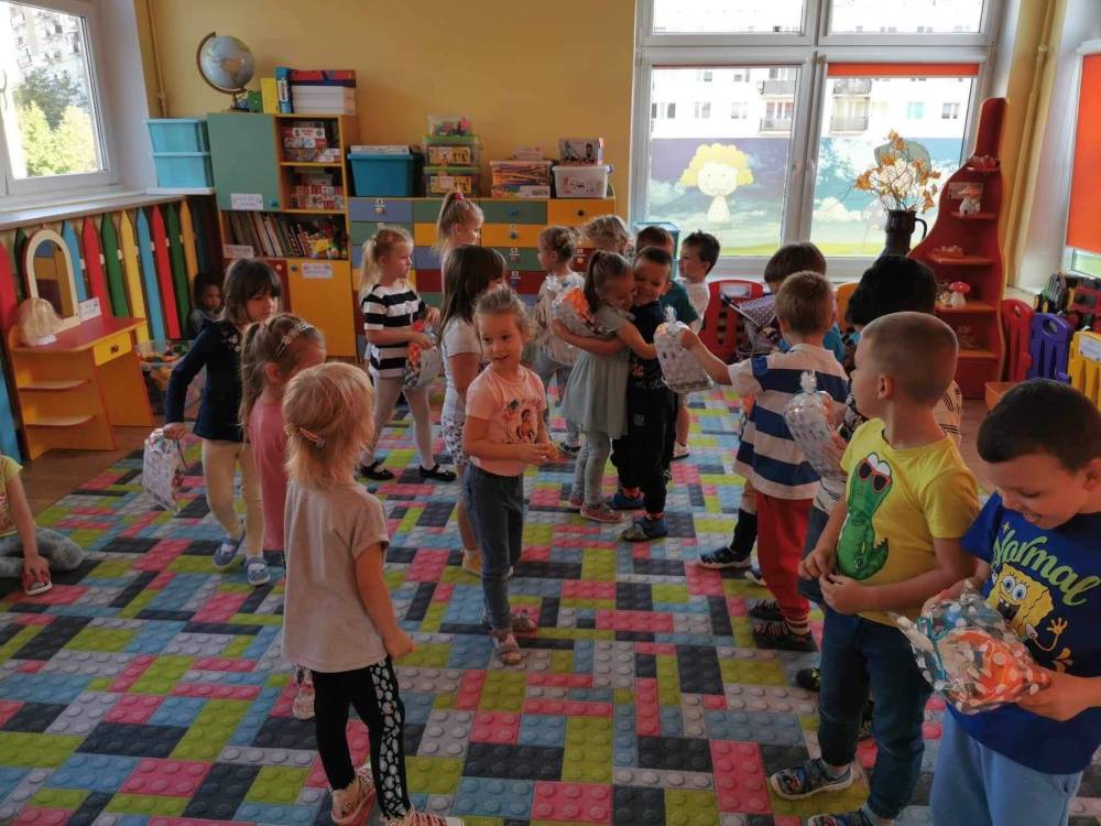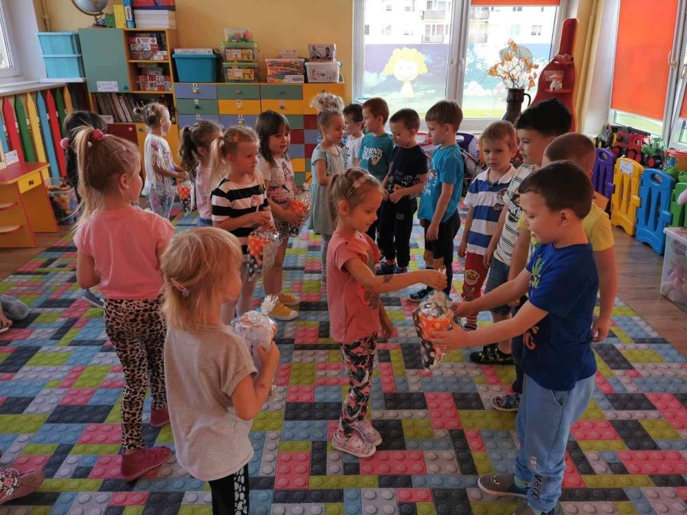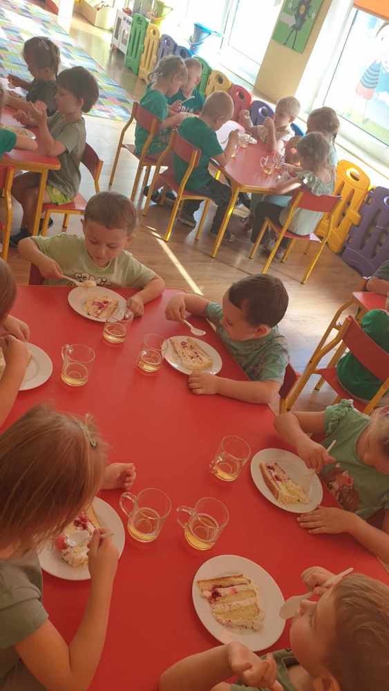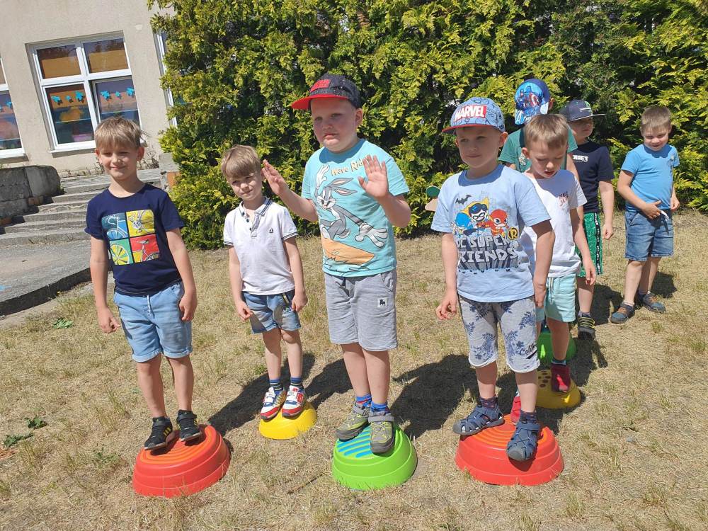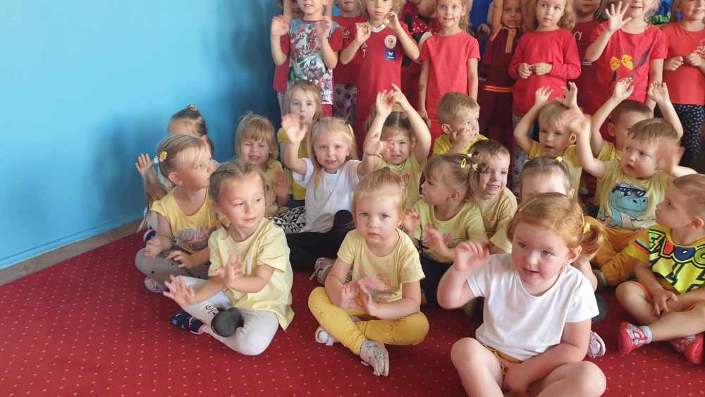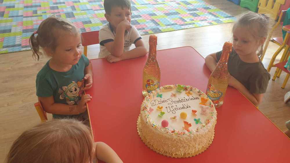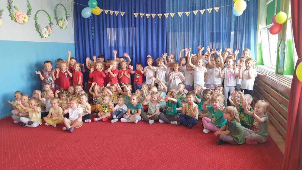 W tym roku świętowaliśmy Dzień Przedszkolaka na sportowo, wszystkie dzieci przybyły do przedszkola ubrane w kolorowe stroje sportowe: grupa Gwiazdek na żółto, Ufoludków na zielono, Rakiet na czerwono a Astronautów na biało. Nasze Przedszkolaki tego dnia uczestniczyły w zawodach sportowych, tańczyły Zumbe, pokonały kolorowy tor przeszkód połączony ze ścieżka sensoryczną, dzięku temu ćwiczyły swoją sprawność ruchową. Było przy tym mnóstwo radości, śmiechu i głośnego dopingowania kolegów i koleżanek. Na koniec na wszystkie przedszkolaki w ich salach czekały pyszne malinowe torty. Ten dzień był pełen wrażeń i pozytywnych emocji.