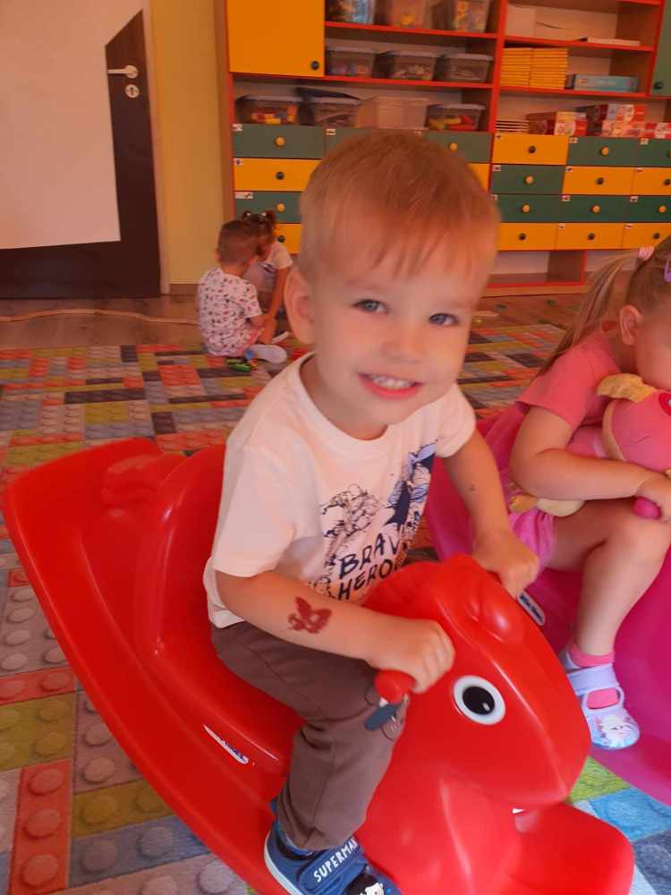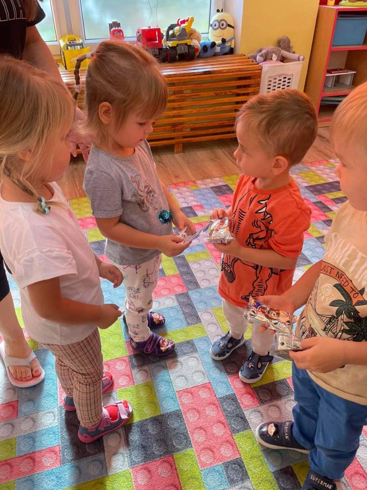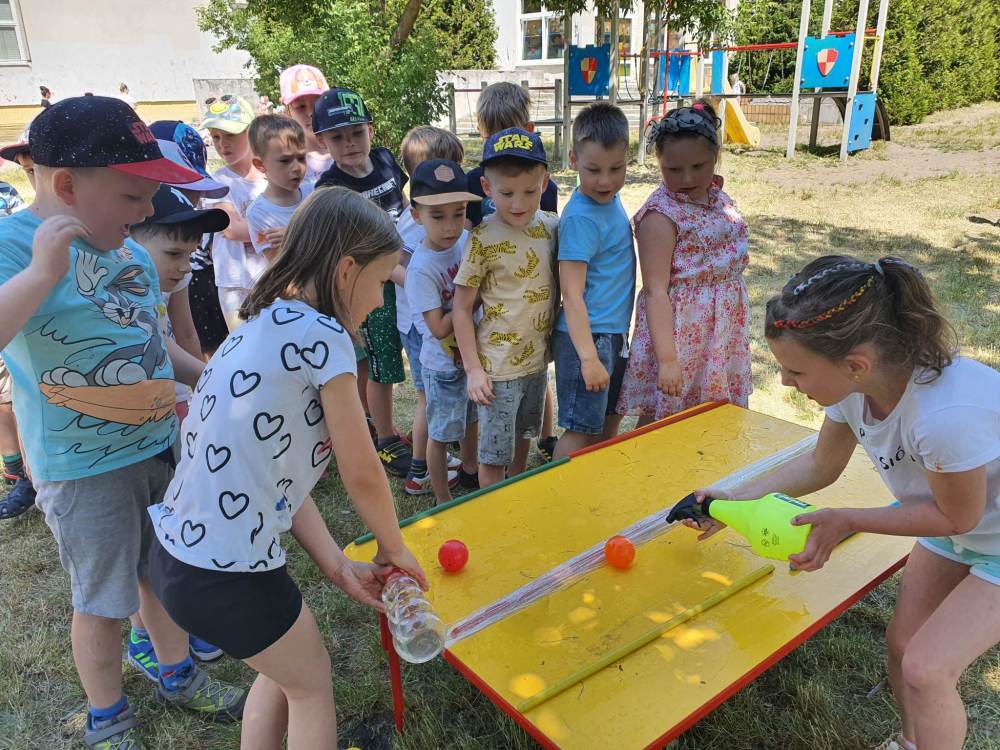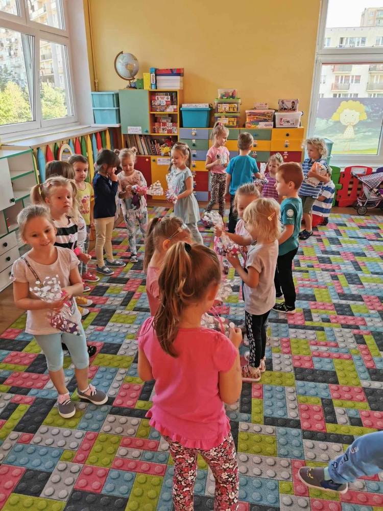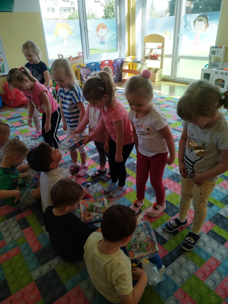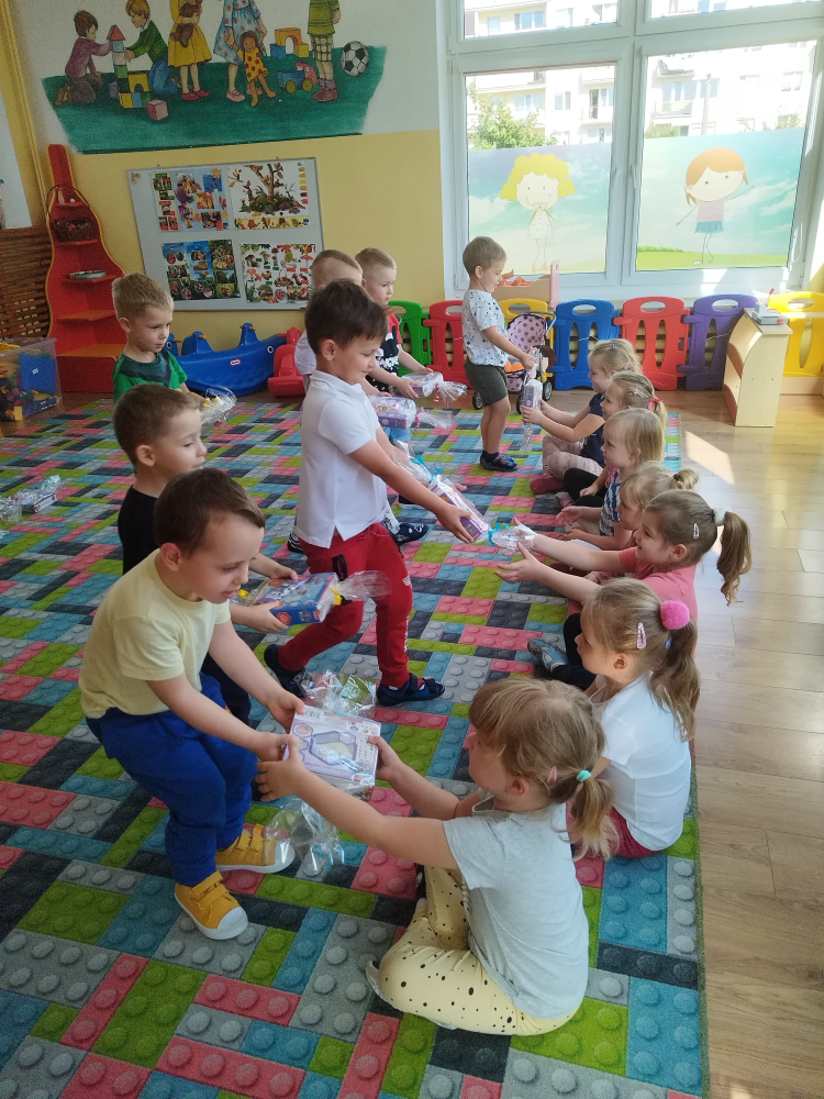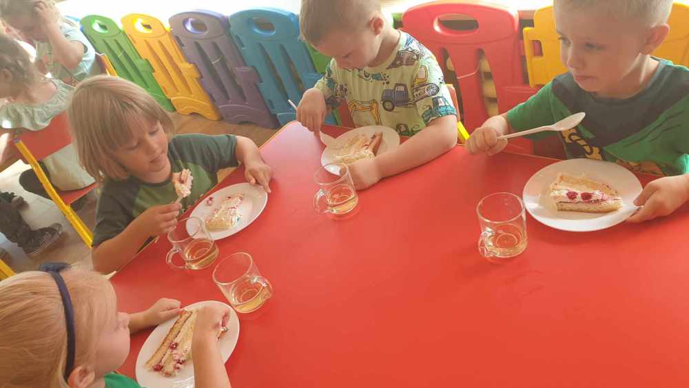 W tym roku świętowaliśmy Dzień Przedszkolaka na sportowo, wszystkie dzieci przybyły do przedszkola ubrane w kolorowe stroje sportowe: grupa Gwiazdek na żółto, Ufoludków na zielono, Rakiet na czerwono a Astronautów na biało. Nasze Przedszkolaki tego dnia uczestniczyły w zawodach sportowych, tańczyły Zumbe, pokonały kolorowy tor przeszkód połączony ze ścieżka sensoryczną, dzięku temu ćwiczyły swoją sprawność ruchową. Było przy tym mnóstwo radości, śmiechu i głośnego dopingowania kolegów i koleżanek. Na koniec na wszystkie przedszkolaki w ich salach czekały pyszne malinowe torty. Ten dzień był pełen wrażeń i pozytywnych emocji.