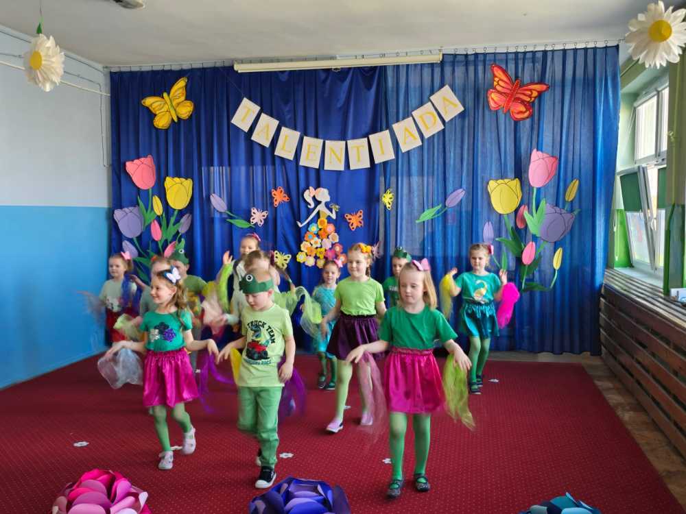 W dniu 21 marca ,,Pierwszego Dnia Wiosny’’ w naszym przedszkolu. odbyła się ,,Talentiada’’ . Dzieci zaprezentowały piosenki, wiersze oraz tańce w wiosennej odsłonie. Nie zabrakło również wiosennych zagadek oraz zabaw plastycznych. . Wszyscy byli bardzo poruszeni i zaciekawieni zdolnościami koleżanek i kolegów. Każda z prezentacji wzbudziła aplauz. Były gromkie brawa i wzajemne wsparcie Mamy nadzieję, że dzięki zaangażowaniu naszych przedszkolaków wiosna zawita do nas na dobre, a wraz z nią ciepłe dni, z których będziemy czerpać radość.