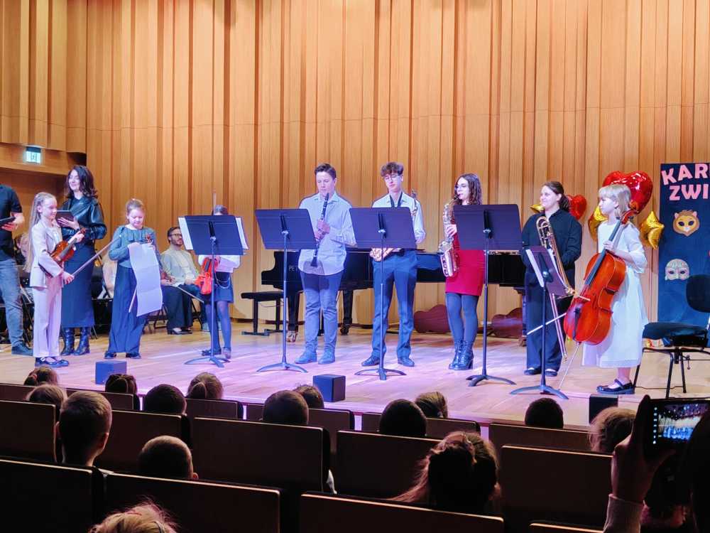 19 lutego dzieci z grup 5 i 6-latków uczestniczyły w koncercie z cyklu ,,Muzyczna podróż’’, zatytułowany ,,Nadęty karnawał’’, który odbył się w Zespole Szkół Muzycznych im. Czesława Niemena we Włocławku . Przedszkolaki odbyły kolejną muzyczną podróż do magicznej krainy dźwięków. Tym razem bohaterami koncertu były instrumenty dęte. Dzieci miały okazję dowiedzieć się, czy żółwie mogą tańczyć kankana, a także przekonać się, czy instrumenty lubią zabawy karnawałowe. Nie zabrakło również zagadek i innych muzycznych atrakcji. Dziękujemy za zaproszenie.